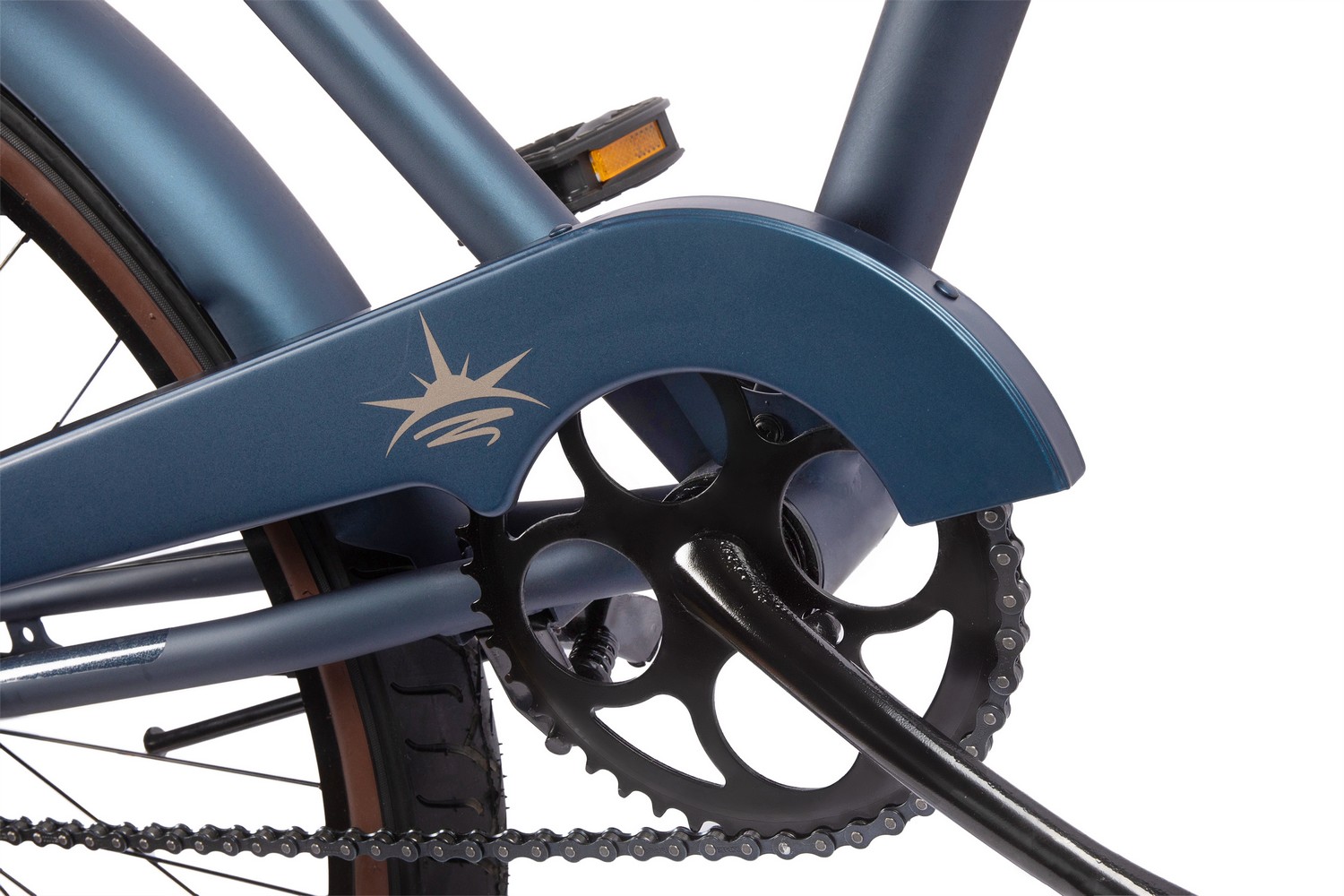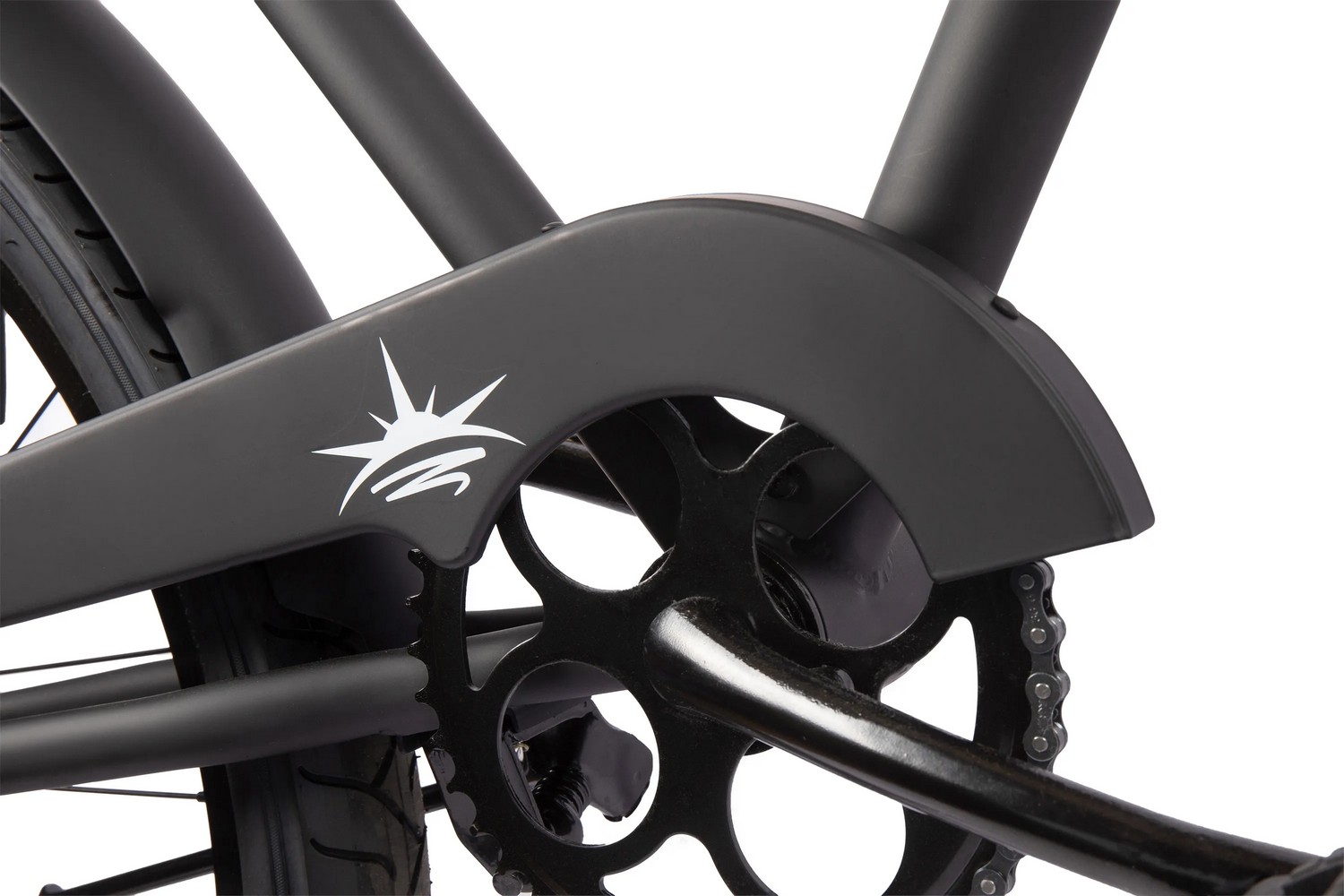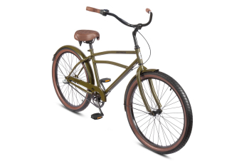 Комфортабельный круизер с оборудованием планетарного типа Shimano, 3 скорости. Технические особенности: прочная стальная рама (Hi-Ten, прямой рулевой стакан), жесткая стальная вилка, одинарные стальные обода (под ниппель AV), ножные педальные тормоза, полноразмерные крылья, защита цепи, комфортное седло с пружинами, подножка. Подходит для прогулочного катания в городских условиях. Диаметр колес - 26 дюймов. Вес - 16,5 кг.