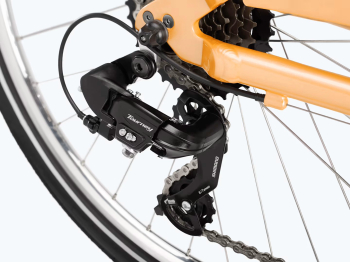 - алюминиевая рама (сплав 6061-T6, скрытая проводка, прямой рулевой стакан, запатентованная технология Flat-Foot, съемный петух, крепления для фляги, сумок и багажника),
