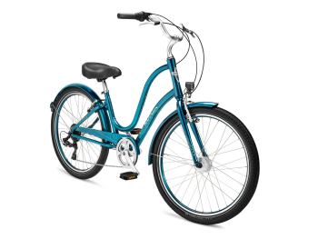 Комфортабельный женский круизер с оборудованием начального класса Shimano, 7 скоростей. Подходит для прогулочного катания в городских условиях. Диаметр колес - 26 дюймов. Вес - 15,45 кг.