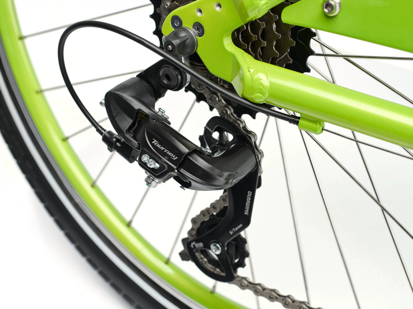 - алюминиевая рама (сплав 6061-T6, скрытая проводка, прямой рулевой стакан, запатентованная технология Flat-Foot, съемный петух, крепления для фляги, сумок и багажника),