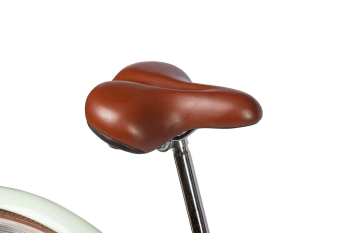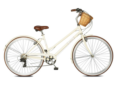 Комфортабельный женский велосипед с оборудованием начального класса Shimano, 7 скоростей. Технические особенности: прочная стальная рама (открытая проводка, прямой рулевой стакан, интегрированный петух), жесткая стальная вилка, одинарные стальные обода (под ниппель AV), надежные ободные тормоза V-brake (алюминиевые рычаги), полноразмерные крылья, защита цепи, комфортное седло с эластомерами, передняя корзина, подножка. Подходит для прогулочного катания в городских условиях. Диаметр колес - 28 дюймов. Вес - 16,5 кг.