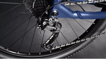 Передает вращение от шатунов на кассету. Теоретически цепь представляет собой подшипники скольжения (втулки), соединенные между собой боковыми пластинами. Цепи разнятся по длине, то есть количеству звеньев, и по ширине. Чем больше скоростей на велосипеде, тем цепь уже. Данный элемент является открытым, поэтому нуждается в частой смазке и чистке. Во многом плавное переключение передач, а соответственно и ход велосипеда зависят от смазки цепи и степени ее загрязнения.