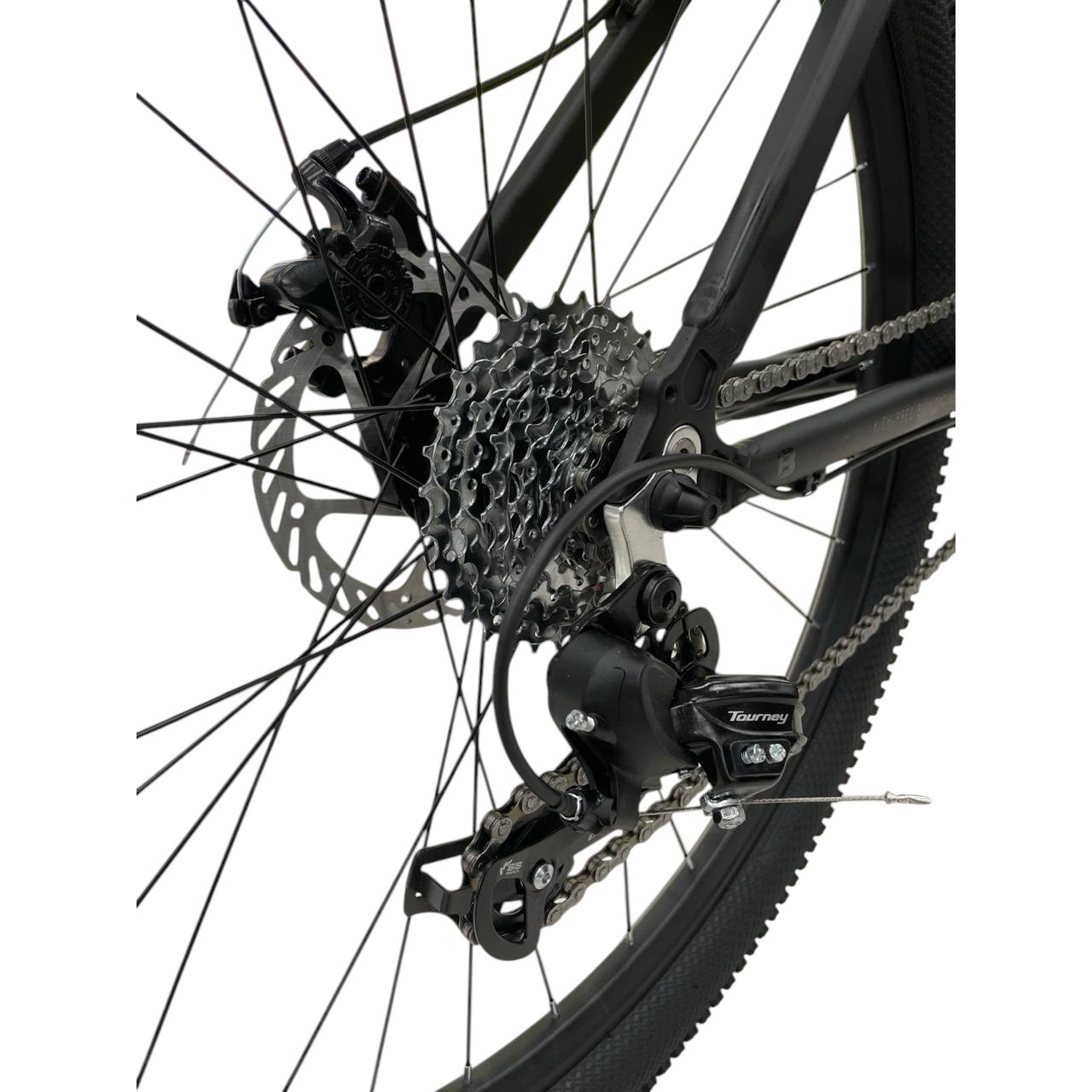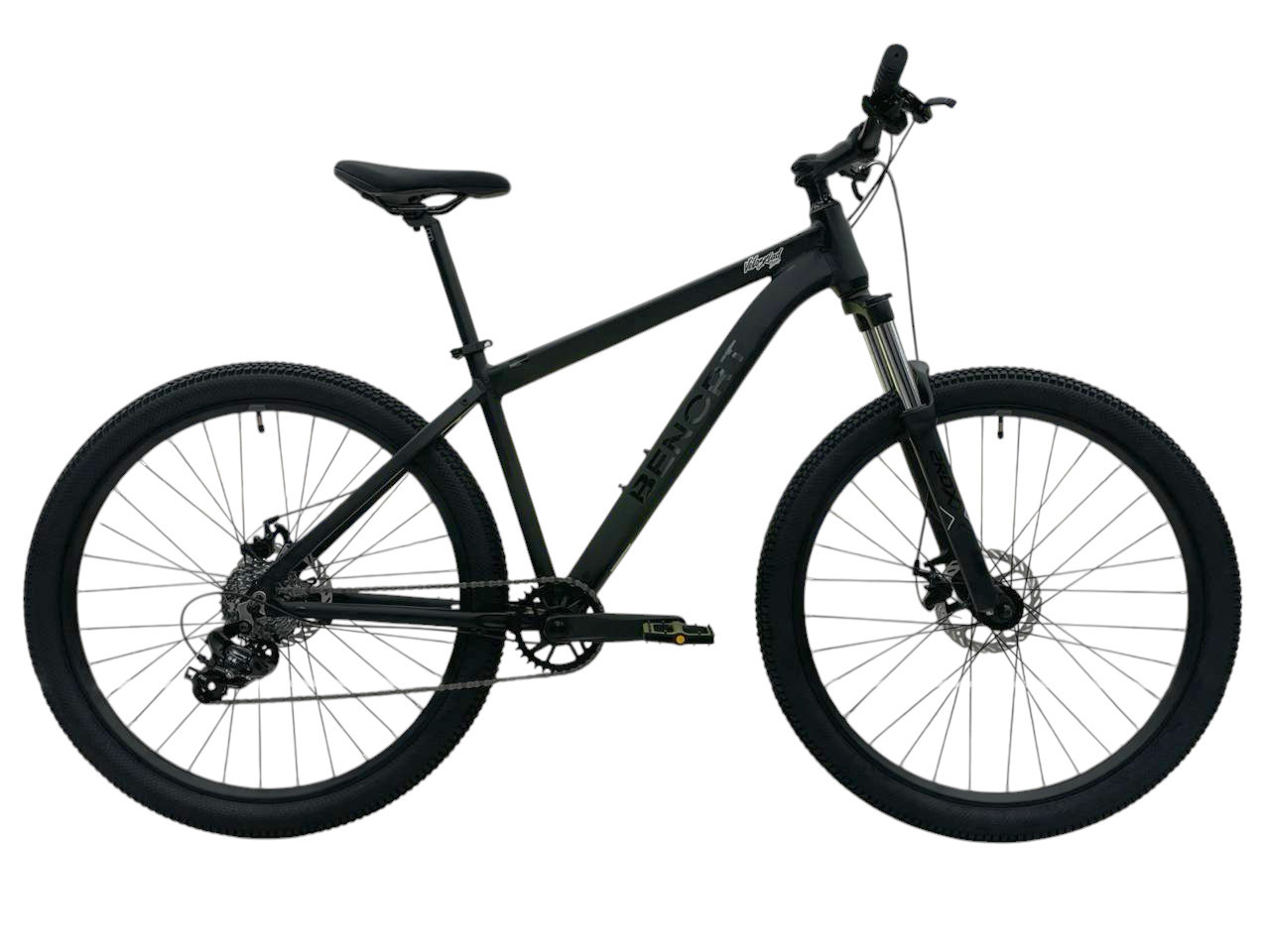 Горный велосипед Benort Raptor 27.5 — идеальный выбор для начинающих райдеров, ценящих надёжность, комфорт и универсальность. Модель спроектирована для прогулок по паркам, лёгкому бездорожью и городским маршрутам. Велосипед собран на прочной алюминиевой раме из сплава 6061 с продуманной геометрией и современными технологиями. Амортизационная вилка с ходом 100 мм, оснащенная блокировкой и регулировкой преднагрузки, эффективно отрабатывает неровности, а при необходимости превращается в жёсткую для экономии энергии на ровных участках. 7-скоростная трансмиссия Shimano Tourney с кассетой обеспечивает простое и надёжное переключение, а раздельные манетка и тормозная ручка упрощают будущие апгрейды. Механические дисковые тормоза, двойные обода и втулки на промышленных подшипниках гарантируют безопасность, плавный накат и долгий срок службы. Широкие покрышки 27.5 × 2.25 и руль 720 мм повышают устойчивость и контроль. Вес велосипеда — около 13,7 кг.