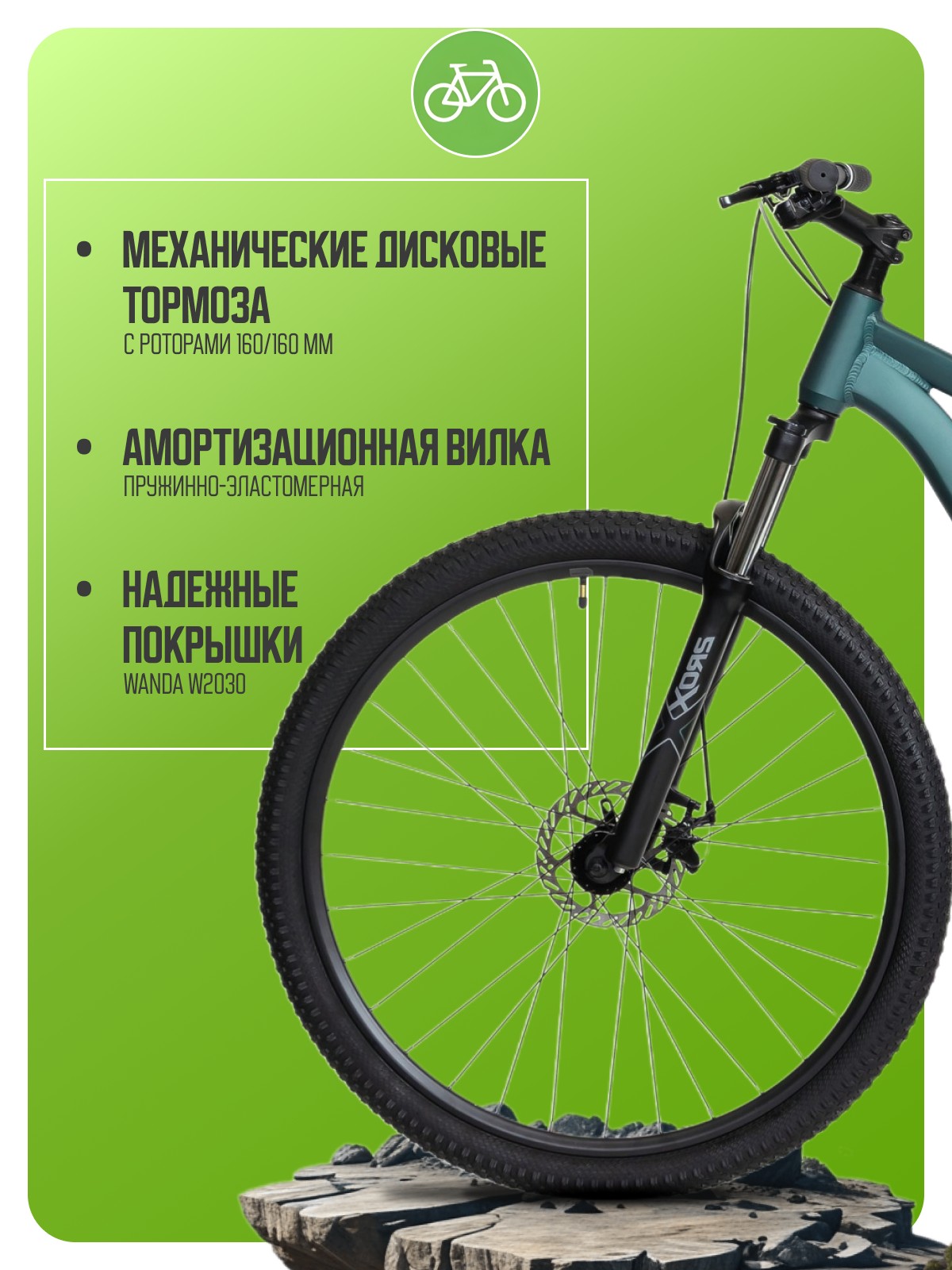 - Механические дисковые тормоза с роторами 160/160 мм — надёжное торможение в любых условиях