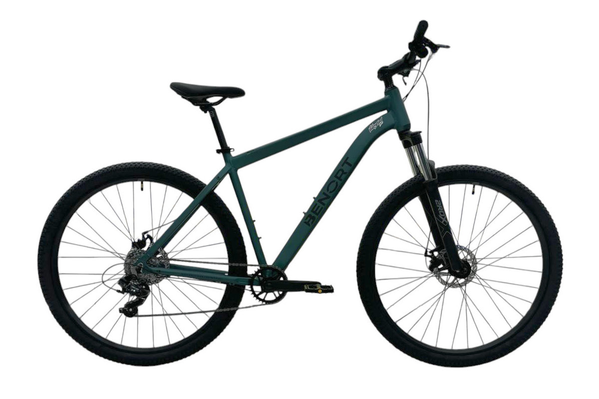 Горный велосипед Benort Raven 29 — идеальный выбор для начинающих райдеров, ценящих надёжность, комфорт и универсальность. Модель спроектирована для прогулок по паркам, лёгкому бездорожью и городским маршрутам. Велосипед собран на прочной алюминиевой раме из сплава 6061 с продуманной геометрией и современными технологиями. Амортизационная вилка с ходом 100 мм, оснащенная блокировкой и регулировкой преднагрузки, эффективно отрабатывает неровности, а при необходимости превращается в жёсткую для экономии энергии на ровных участках. 7-скоростная трансмиссия Shimano Tourney с кассетой обеспечивает простое и надёжное переключение, а раздельные манетка и тормозная ручка упрощают будущие апгрейды. Механические дисковые тормоза, двойные обода и втулки на промышленных подшипниках гарантируют безопасность, плавный накат и долгий срок службы. Широкие покрышки 29 × 2.25 и руль 720 мм повышают устойчивость и контроль. Вес велосипеда — около 14,2 кг.