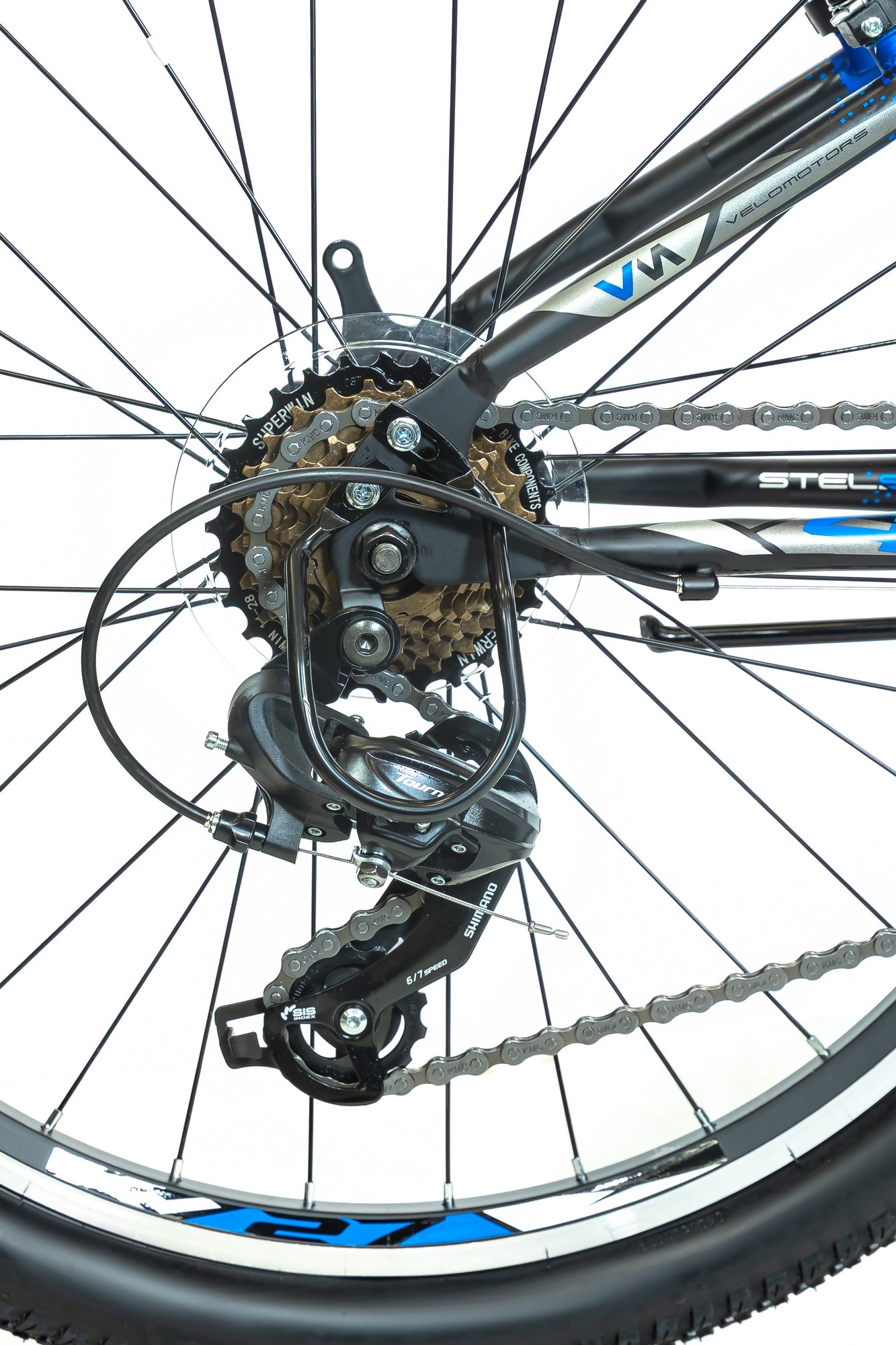 Установлена на задней втулке и представляет собой блок, составленный из звезд с разным количеством зубьев. Количество звезд на велосипеде доходит до 10 штук. Существует два варианта конструкции кассет. Первый — это, собственно, кассета, она устанавливается на шлицы барабана, смонтированного на задней втулке. Второй — это, когда барабан выполняет единое целое со звездами, а на втулку наворачивается по резьбе.