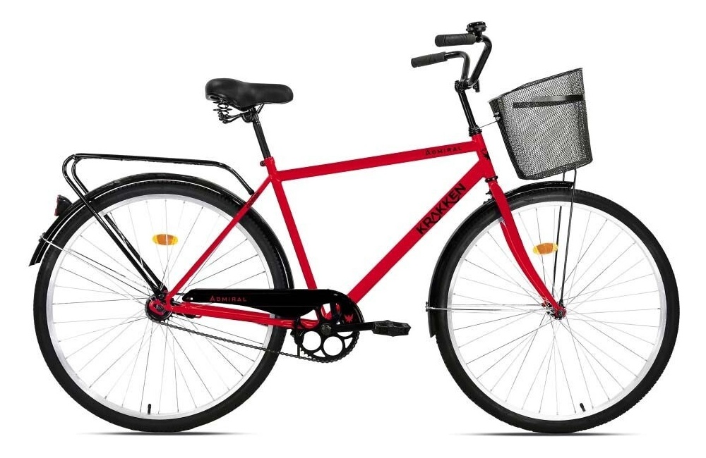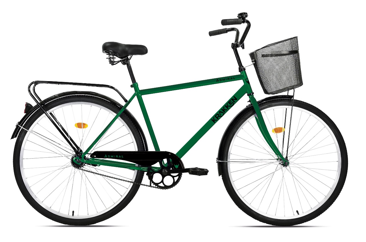 Дорожный велосипед начального уровня без переключения передач. Технические особенности: прочная стальная рама, жесткая стальная вилка, одинарные стальные обода, ножные педальные тормоза, задний багажник, передняя корзина, полноразмерные крылья, защита цепи, подножка, катафоты, звонок. Подходит для прогулочного катания по шоссе и ровным проселочным дорогам. Диаметр колес - 28 дюймов. Вес - 18 кг.