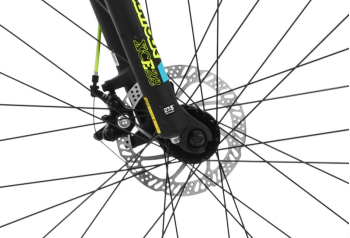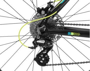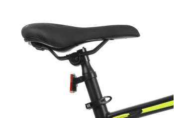 Горный велосипед с оборудованием начального любительского класса Shimano, 24 скорости. Технические особенности: легкая алюминиевая рама (частично скрытая проводка, прямой рулевой стакан, кареточный стакан BSA, съемный петух, крепление калипера IS), амортизационная вилка SR Suntour XCE-DS (пружинно-эластомерная, ход 100 мм, регулировка преднагрузки), двойные алюминиевые обода (под AV ниппель), дисковые механические тормоза, катафоты. Подходит для прогулочной езды по различным дорогам и пересеченной местности. Диаметр колес - 27,5 дюймов. Вес - 15,2 кг.