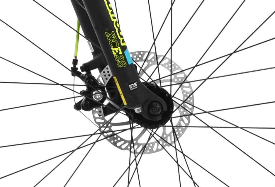 Горный велосипед с оборудованием начального любительского класса Shimano, 24 скорости. Технические особенности: легкая алюминиевая рама (частично скрытая проводка, прямой рулевой стакан, кареточный стакан BSA, съемный петух, крепление калипера IS), амортизационная вилка SR Suntour XCE-DS (пружинно-эластомерная, ход 100 мм, регулировка преднагрузки), двойные алюминиевые обода (под AV ниппель), дисковые механические тормоза, катафоты. Подходит для прогулочной езды по различным дорогам и пересеченной местности. Диаметр колес - 27,5 дюймов. Вес - 15,2 кг.