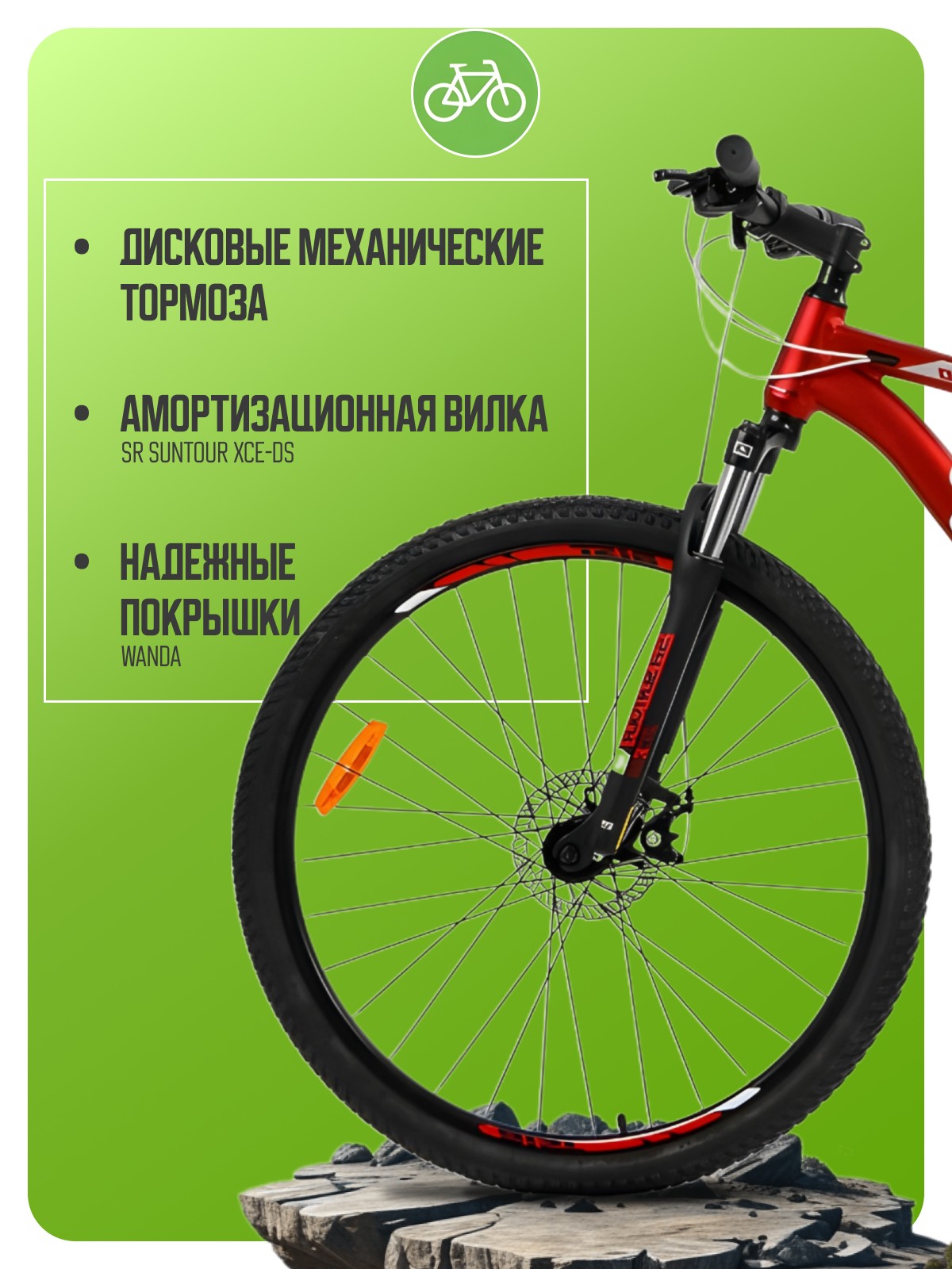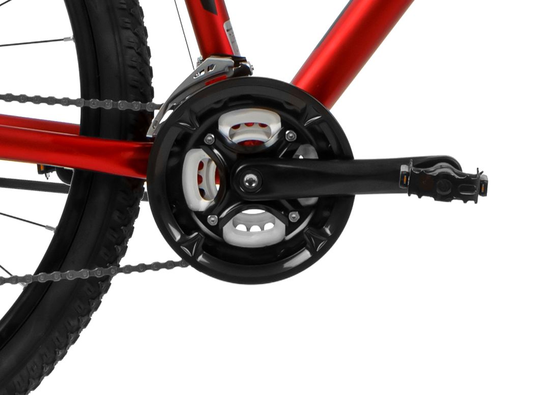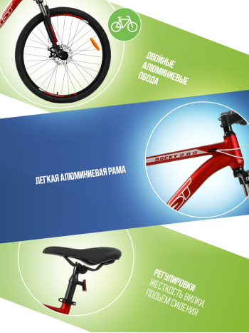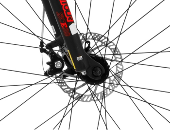 Горный велосипед с оборудованием начального любительского класса Shimano, 24 скорости. Технические особенности: легкая алюминиевая рама (частично скрытая проводка, прямой рулевой стакан, кареточный стакан BSA, съемный петух, крепление калипера IS), амортизационная вилка SR Suntour XCE-DS (пружинно-эластомерная, ход 100 мм, регулировка преднагрузки), двойные алюминиевые обода (под AV ниппель), дисковые механические тормоза, катафоты. Подходит для прогулочной езды по различным дорогам и пересеченной местности. Диаметр колес - 29 дюймов. Вес - 15,5 кг.