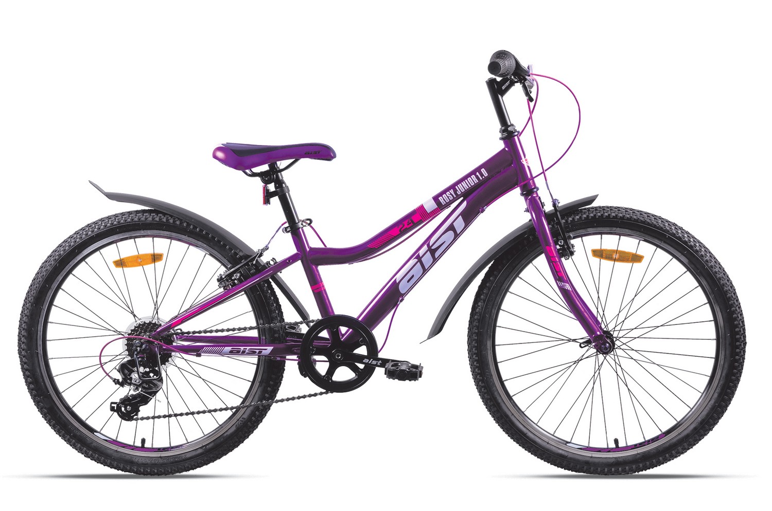 Велосипед, предназначенный для детей в возрасте от восьми до тринадцати лет, с оборудованием начального класса Shimano/Microshift, 6 скоростей. Технические особенности: прочная стальная рама (открытая проводка, прямой рулевой стакан, кареточный стакан BSA), жесткая стальная вилка, двойные алюминиевые обода (под AV ниппель), надежные ободные тормоза V-brake, подножка, катафоты, защита заднего переключателя. Подходит для обучения и прогулочного катания в городских условиях. Диаметр колес - 24 дюйма. Вес - 13,7 кг.