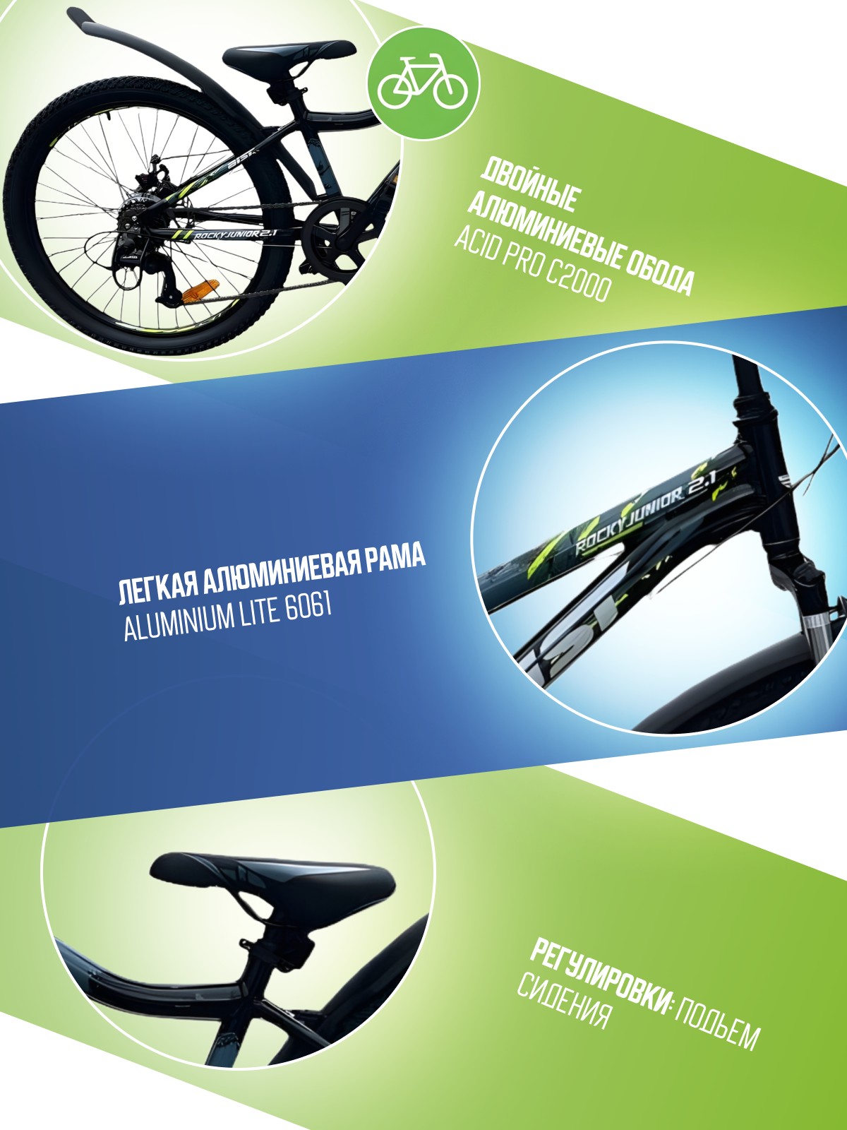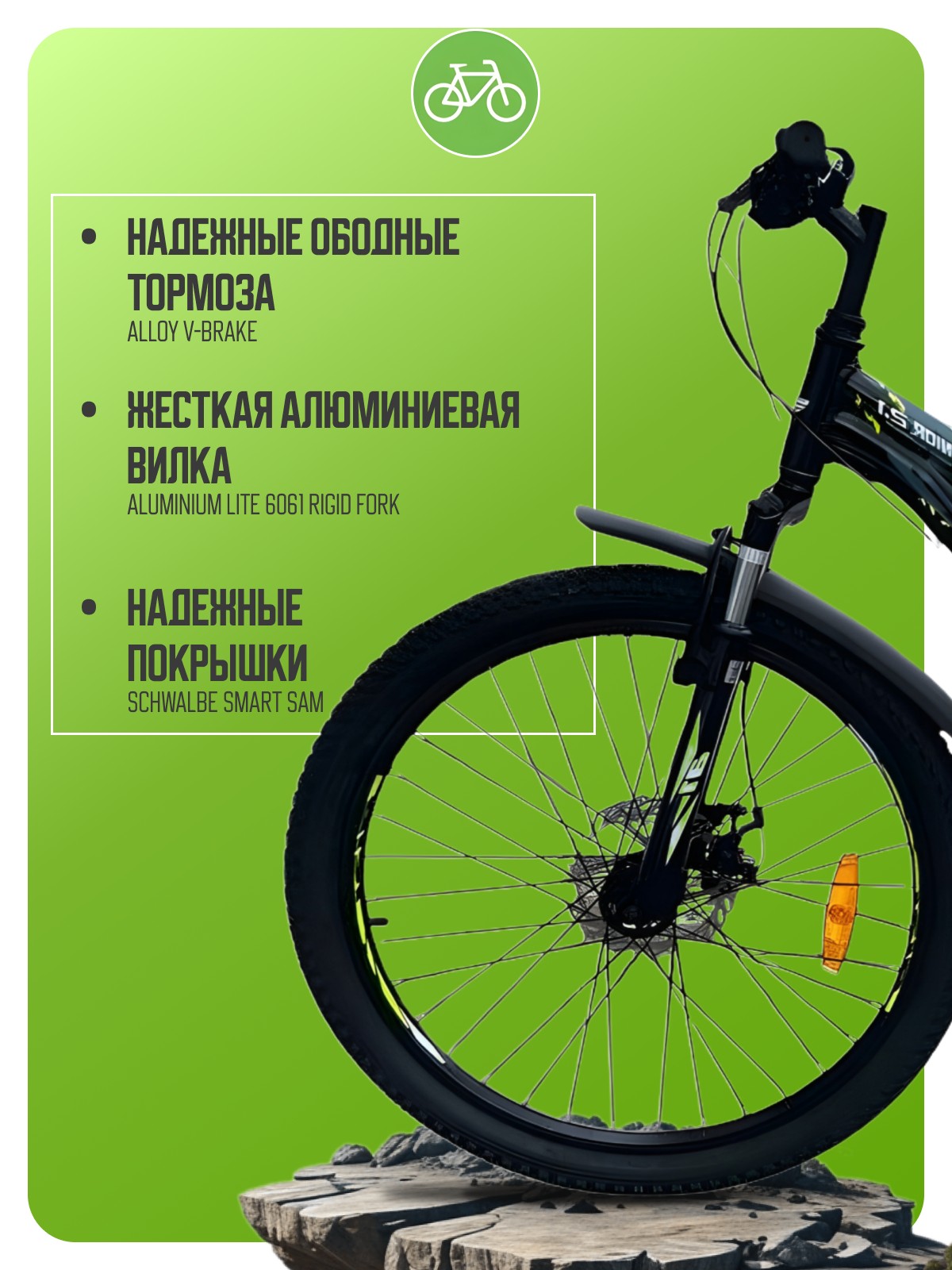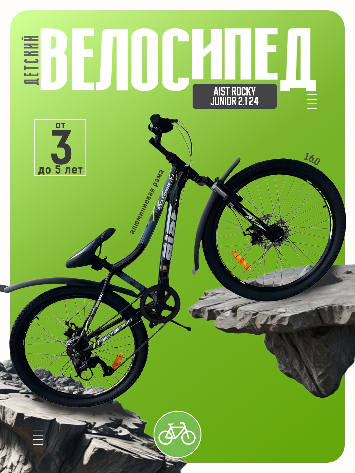 Велосипед, предназначенный для детей в возрасте от восьми до тринадцати лет, с оборудованием начального класса Shimano, 7 скоростей. Технические особенности: легкая алюминиевая рама (открытая проводка, прямой рулевой стакан, кареточный стакан BSA), амортизационная вилка LG-YA (пружинно-эластомерная, ход 60 мм), двойные алюминиевые обода (под AV ниппель), дисковые механические тормоза Yinxing (роторы 160/160 мм), подножка, катафоты, защита заднего переключателя, пластиковые крылья. Подходит для обучения и прогулочного катания в городских условиях. Диаметр колес - 24 дюйма. Вес - 14,1 кг.