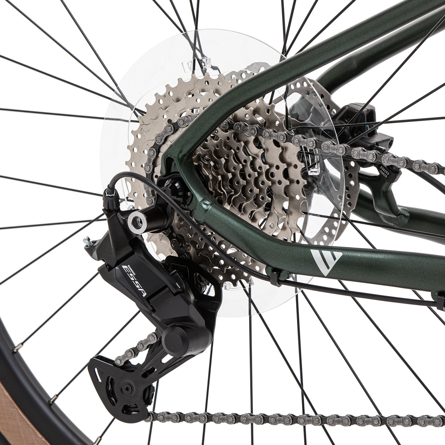 Передает вращение от шатунов на кассету. Теоретически цепь представляет собой подшипники скольжения (втулки), соединенные между собой боковыми пластинами. Цепи разнятся по длине, то есть количеству звеньев, и по ширине. Чем больше скоростей на велосипеде, тем цепь уже. Данный элемент является открытым, поэтому нуждается в частой смазке и чистке. Во многом плавное переключение передач, а соответственно и ход велосипеда зависят от смазки цепи и степени ее загрязнения.