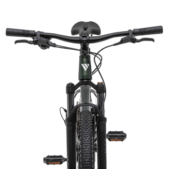 Горный велосипед для подростков с оборудованием начального любительского класса Shimano, 8 скоростей. Технические особенности: легкая алюминиевая рама (сплав 6061, скрытая прокладка тросов, кареточный стакан BSA, конусный рулевой стакан, съёмный петух, крепление калипера Post Mount), амортизационная вилка 2ROXX FS-032 MLO (пружинно-эластомерная, ход 100 мм, механическая блокировка хода, регулировка преднагрузки пружины, покрытие ног QBQ, крепление калипера Post Mount, мягкая пружина), двойные алюминиевые обода (под ниппель AV), дисковые гидравлические тормоза Tektro TKD176 (роторы 160/160 мм с креплением на 6 болтов). Подходит для активной езды по различным дорогам и пересеченной местности. Диаметр колес - 26 дюймов. Вес - 13,6 кг.