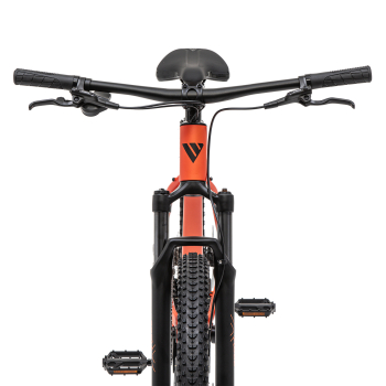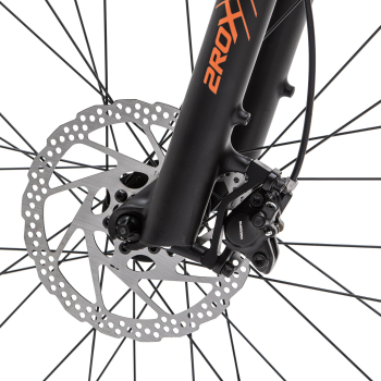 Хардтейл для езды в стиле кросс-кантри с оборудованием любительского класса Shimano, 9 скоростей. Технические особенности: алюминиевая рама Alloy 6061 Hard Tail (сплав 6061, внутренняя прокладка тросов, съёмный петух, рулевой стакан ZS, крепление калипера PM, каретка BSA), амортизационная вилка 2ROXX 362 MLO (пружинно-эластомерная, ноги 32 мм, рабочий ход 100 мм, блокировка хода), двойные алюминиевые обода XHC DP27 (под ниппель AV), дисковые гидравлические тормоза Shimano MT-200 (роторы 160/160 мм). Подходит для активной езды по различным дорогам и пересеченной местности. Диаметр колес - 27,5 дюймов. Вес - 14,2 кг.