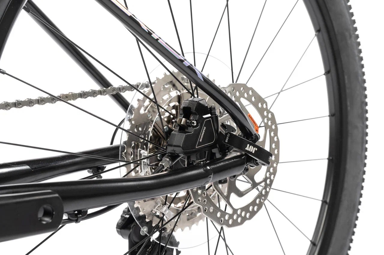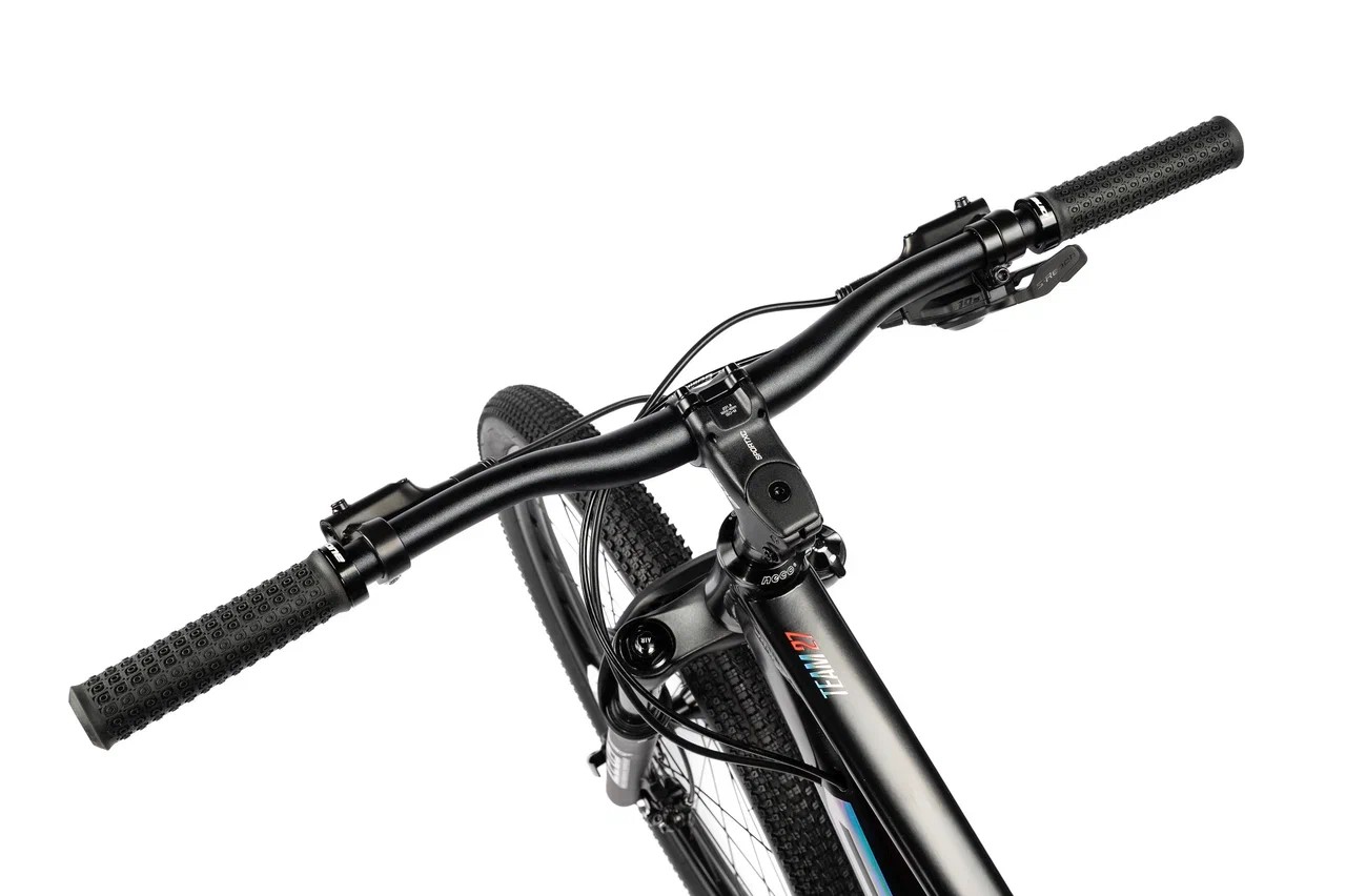 Подростковый горный велосипед с оборудованием предпрофессионального класса Shimano, 10 скоростей. Технические особенности: легкая алюминиевая рама (сплав 6061, двойной баттинг, гидроформинг, скрытая проводка, кареточный стакан BSA, съемный петух, рулевой стакан ZS, крепление калипера Flat Mount), амортизационная вилка RST Zeus Air HLO (воздушно-масляная, ход 100 мм, регулировка жесткости, гидравлическая блокировка, крепление калипера Post Mount), двойные алюминиевые обода ONE HLQC-GA10 (под ниппель Presta), дисковые гидравлические тормоза Shimano MT200 (роторы 160/160 мм). Подходит для активной езды по различным дорогам и пересеченной местности. Диаметр колес - 27,5 дюймов. Вес - 14,3 кг.