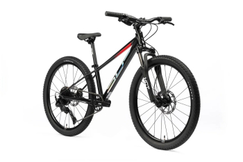 Подростковый горный велосипед с оборудованием высшего любительского класса Shimano, 9 скоростей. Технические особенности: легкая алюминиевая рама (сплав 6061, двойной баттинг, гидроформинг, скрытая проводка, кареточный стакан BSA, съемный петух, рулевой стакан ZS, крепление калипера Flat Mount), амортизационная вилка SR Suntour XCT-JR-L DS (пружинно-эластомерная, ход 50 мм, регулировка преднагрузки, крепление калипера Post Mount), двойные алюминиевые обода ONE HLQC-GA10 (под ниппель Presta), дисковые гидравлические тормоза Tektro HD-J2820 (роторы 160/160 мм). Подходит для активной езды по различным дорогам и пересеченной местности. Диаметр колес - 24 дюйма. Вес - 13,5 кг.