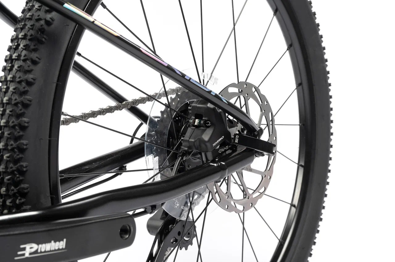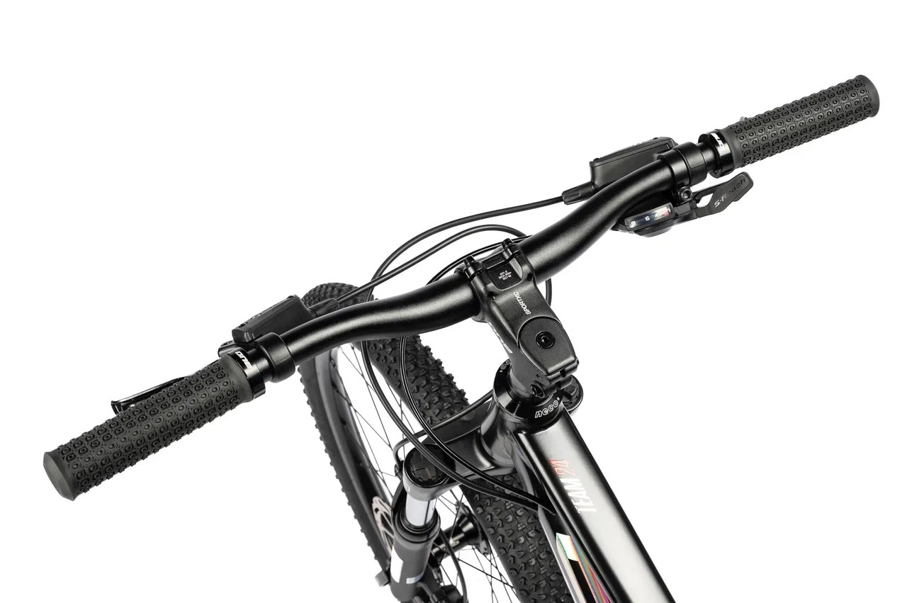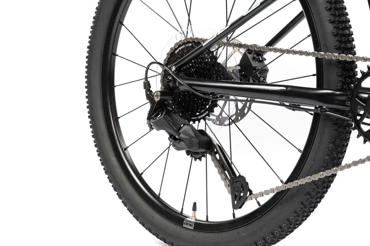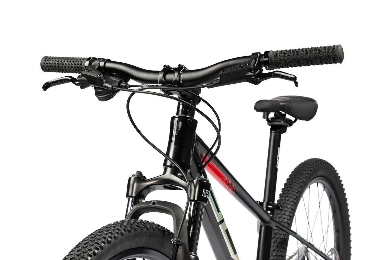 Подростковый горный велосипед с оборудованием высшего любительского класса Shimano, 9 скоростей. Технические особенности: легкая алюминиевая рама (сплав 6061, двойной баттинг, гидроформинг, скрытая проводка, кареточный стакан BSA, съемный петух, рулевой стакан ZS, крепление калипера Flat Mount), амортизационная вилка SR Suntour XCT-JR-L DS (пружинно-эластомерная, ход 50 мм, регулировка преднагрузки, крепление калипера Post Mount), двойные алюминиевые обода ONE HLQC-GA10 (под ниппель Presta), дисковые гидравлические тормоза Tektro HD-J2820 (роторы 160/160 мм). Подходит для активной езды по различным дорогам и пересеченной местности. Диаметр колес - 24 дюйма. Вес - 13,5 кг.