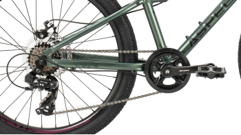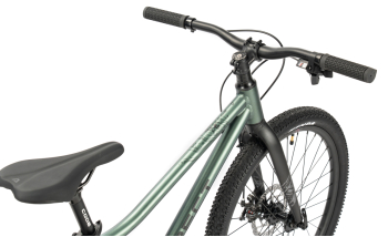 Велосипед, предназначенный для детей в возрасте от восьми до тринадцати лет, с оборудованием начального класса Shimano/LTWOO, 7 скоростей. Технические особенности: легкая алюминиевая рама (сплав 6061, частично скрытая проводка, прямой рулевой стакан, кареточный стакан BSA, съемный петух, крепление калипера IS), жесткая алюминиевая вилка (крепление калипера IS), двойные алюминиевые обода (под ниппель AV), дисковые механические тормоза Repute DSC310 (роторы 160/160 мм). Подходит для прогулочной езды по ровным дорогам и по несложной пересеченной местности. Диаметр колес - 24 дюйма. Вес - 13 кг.