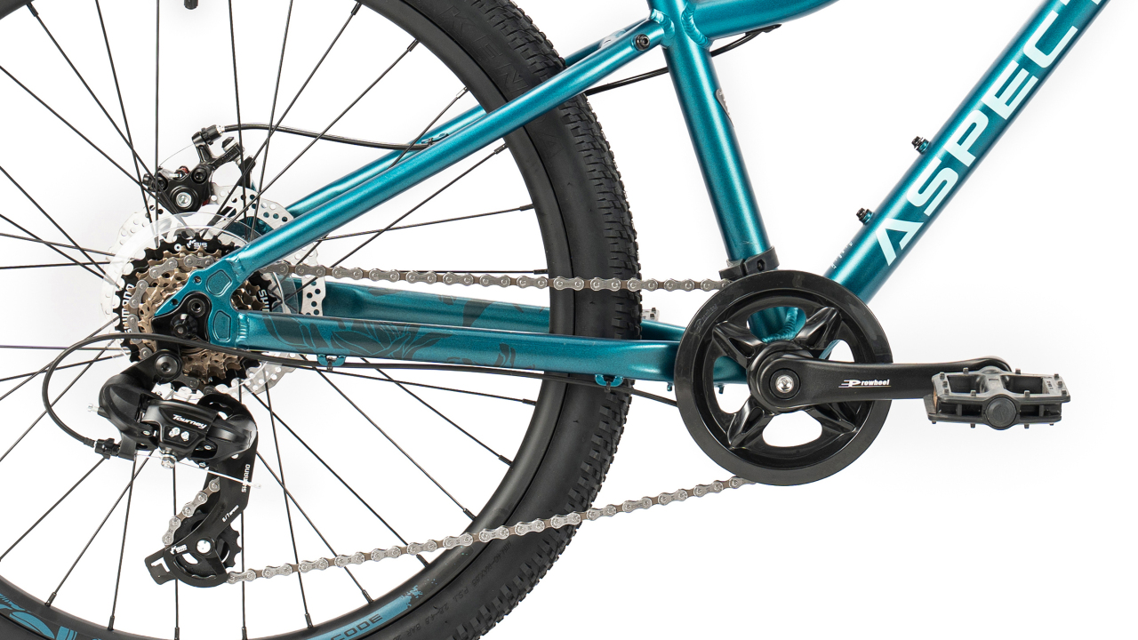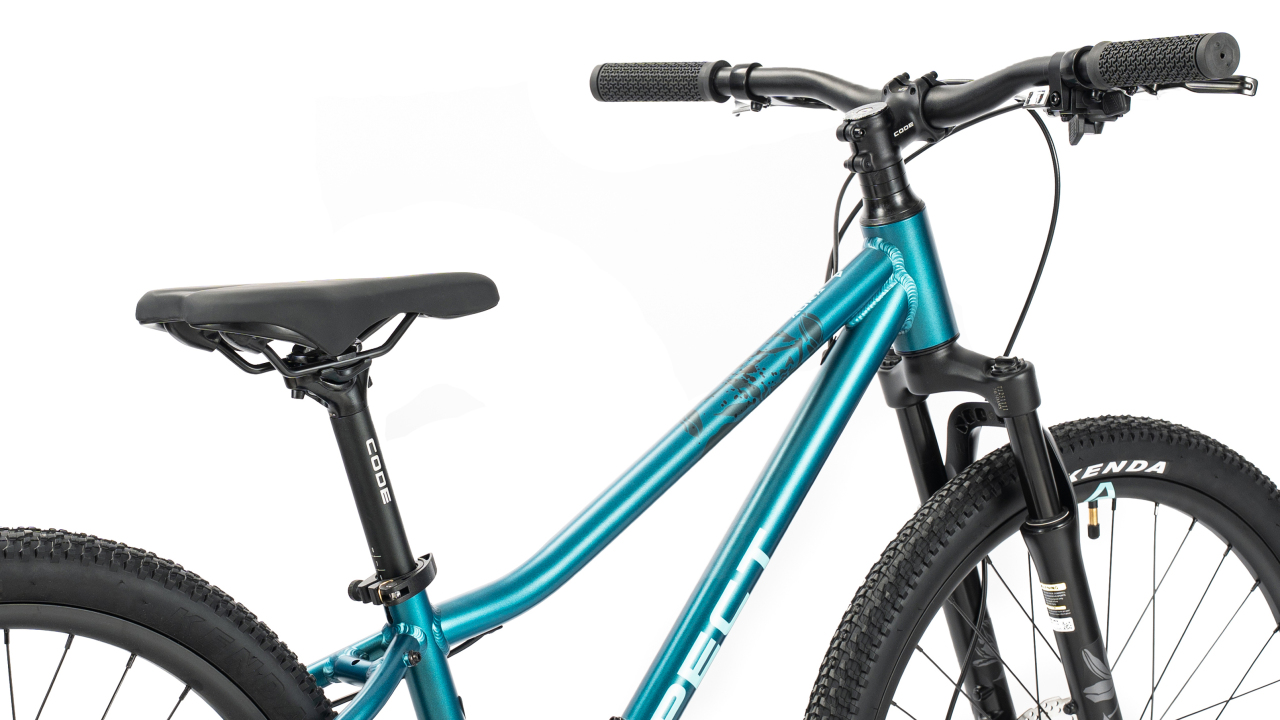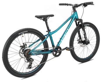 Велосипед, предназначенный для девочек в возрасте от восьми до тринадцати лет, с оборудованием начального класса Shimano/LTWOO, 7 скоростей. Технические особенности: легкая алюминиевая рама (сплав 6061, частично скрытая проводка, прямой рулевой стакан, кареточный стакан BSA, съемный петух, крепление калипера IS), амортизационная вилка Zoom 565D (пружинно-эластомерная, ход 80 мм, крепление калипера PM), двойные алюминиевые обода (под ниппель AV), дисковые механические тормоза Repute DSC310 (роторы 160/160 мм). Подходит для прогулочной езды по ровным дорогам и по несложной пересеченной местности. Диаметр колес - 24 дюйма. Вес - 13,5 кг.