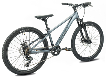 Велосипед, предназначенный для детей в возрасте от восьми до тринадцати лет, с оборудованием начального класса Shimano/LTWOO, 7 скоростей. Технические особенности: легкая алюминиевая рама (сплав 6061, частично скрытая проводка, прямой рулевой стакан, кареточный стакан BSA, съемный петух, крепление калипера IS), амортизационная вилка Zoom 565D (пружинно-эластомерная, ход 80 мм, крепление калипера PM), двойные алюминиевые обода (под ниппель AV), дисковые механические тормоза Repute DSC310 (роторы 160/160 мм). Подходит для прогулочной езды по ровным дорогам и по несложной пересеченной местности. Диаметр колес - 24 дюйма. Вес - 13,5 кг.