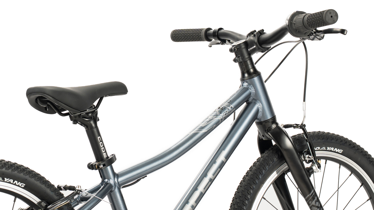 Велосипед, предназначенный для детей в возрасте от пяти до девяти лет, с оборудованием начального класса Shimano, 6 скоростей. Технические особенности: легкая алюминиевая рама (сплав 6061, частично скрытая проводка, прямой рулевой стакан, кареточный стакан BSA, съемный петух), жесткая алюминиевая вилка (крепление под V-brake), двойные алюминиевые обода (под ниппель AV), надежные ободные тормоза V-brake. Подходит для обучения и прогулочного катания в городских условиях. Диаметр колес - 20 дюймов. Вес - 12,5 кг.