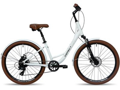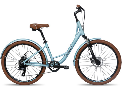 Комфортабельный женский велосипед с оборудованием начального любительского класса Shimano, 8 скоростей. Технические особенности: легкая алюминиевая рама (сплав 6061, гидроформинг, частично скрытая проводка, прямой рулевой стакан, кареточный стакан BSA, съемный петух, крепление калипера IS), амортизационная вилка Zoom 141 (пружинно-эластомерная, ход 45 мм, крепление калипера IS), двойные алюминиевые обода (под ниппель AV), дисковые механические тормоза Tektro TKD-176 (роторы RT553 160/160 мм), полноразмерные крылья, амортизированный подседельный штырь, регулируемый вынос, широкое село с эластомерами. Подходит для комфортного катания по городским улицам и по несложным маршрутам в лесу. Диаметр колес - 26 дюймов. Вес - 15,5 кг.