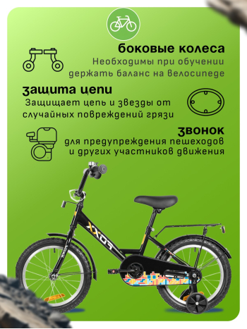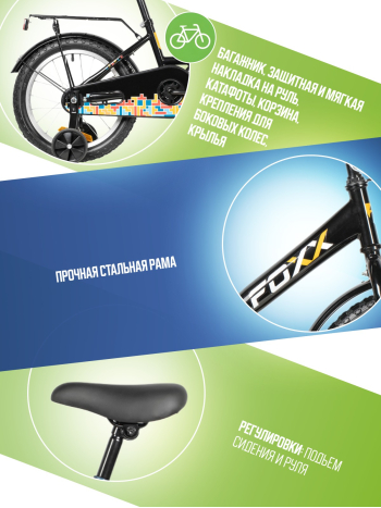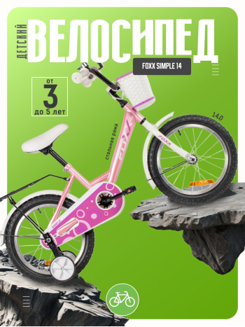 Велосипед, предназначенный для детей в возрасте от двух до четырех лет, без переключения передач. Технические особенности: прочная стальная рама, жесткая стальная вилка, одинарные алюминиевые обода (ниппель AV), ножной педальный тормоз, полная защита цепи, съемные боковые колеса, длинные крылья, задний багажник с зажимом, передняя корзинка, мягкая накладка на руле, звонок, катафоты. Подходит для обучения и прогулочного катания в городских условиях. Диаметр колес - 14 дюймов. Вес - 9,2 кг.