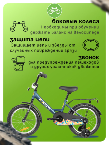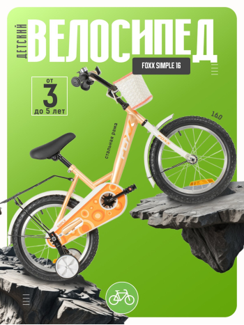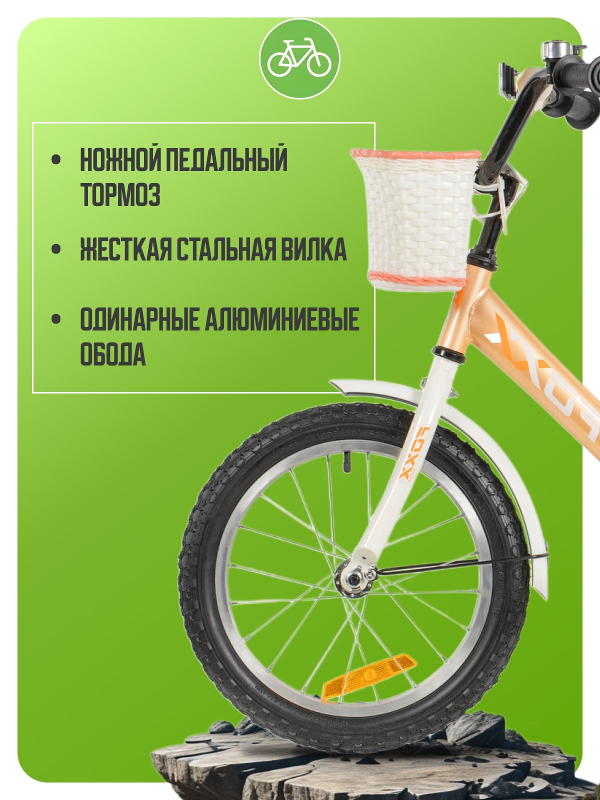 Велосипед, предназначенный для детей в возрасте от трех до шести лет, без переключения передач. Технические особенности: прочная стальная рама, жесткая стальная вилка, одинарные алюминиевые обода (ниппель AV), ножной педальный тормоз, полная защита цепи, съемные боковые колеса, длинные крылья, задний багажник с зажимом, передняя корзинка, мягкая накладка на руле, звонок, катафоты. Подходит для обучения и прогулочного катания в городских условиях. Диаметр колес - 16 дюймов. Вес - 10,1 кг.