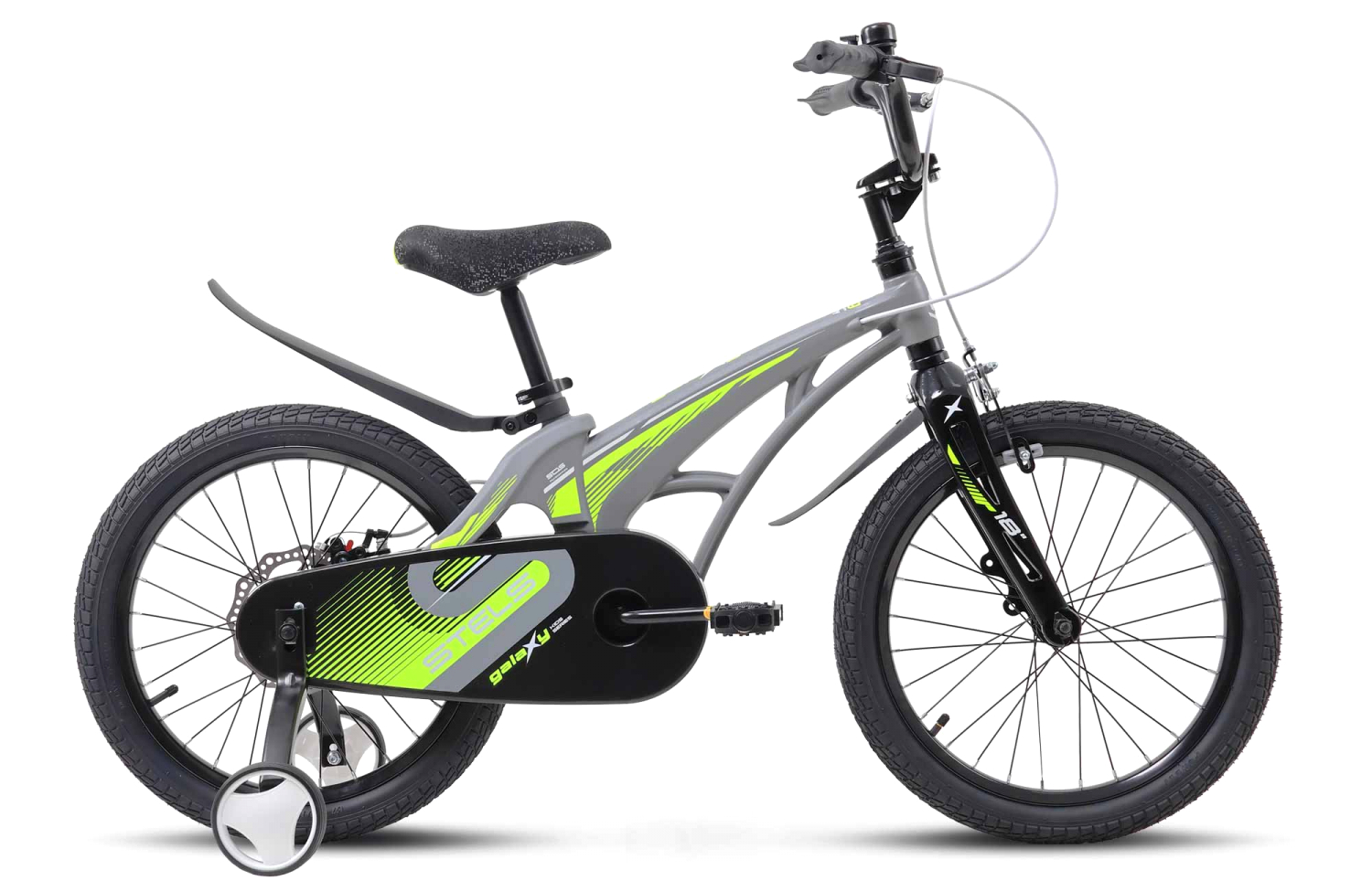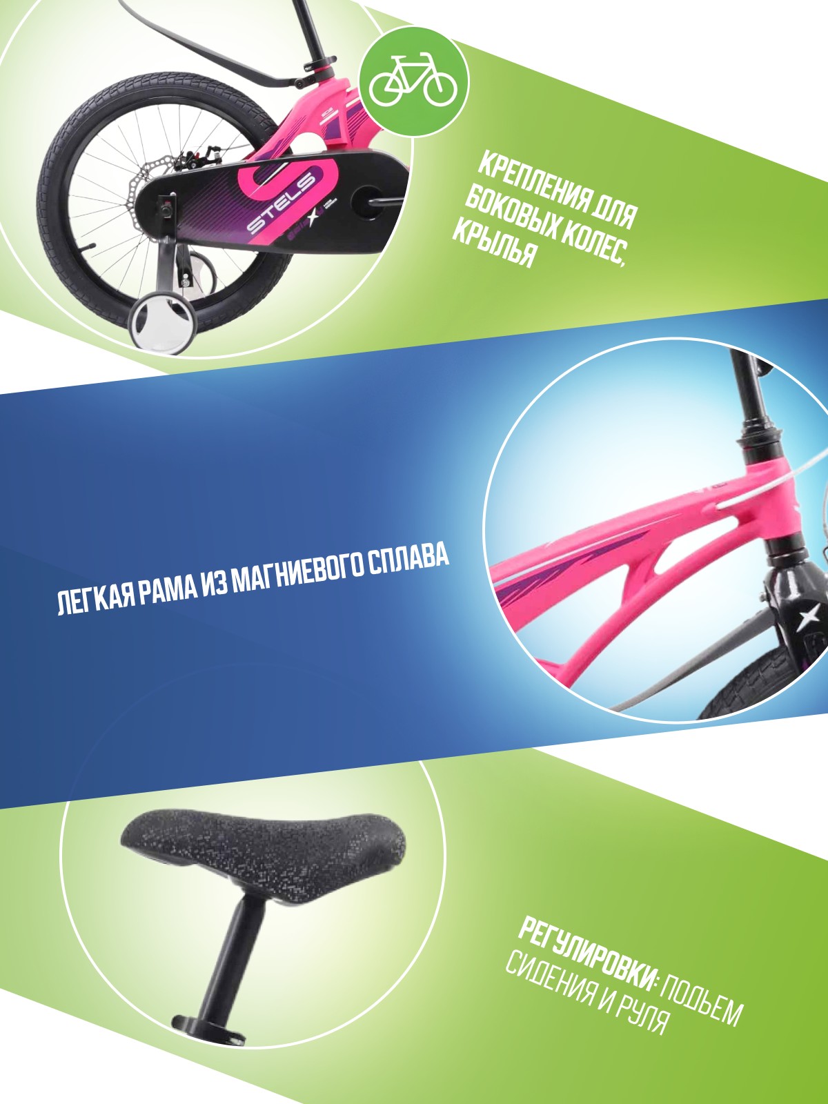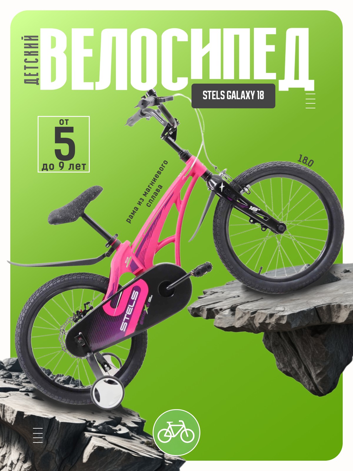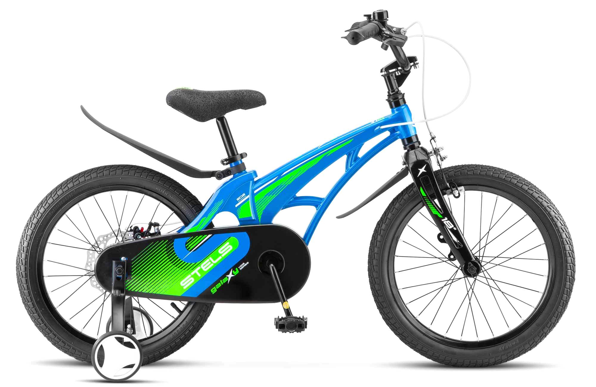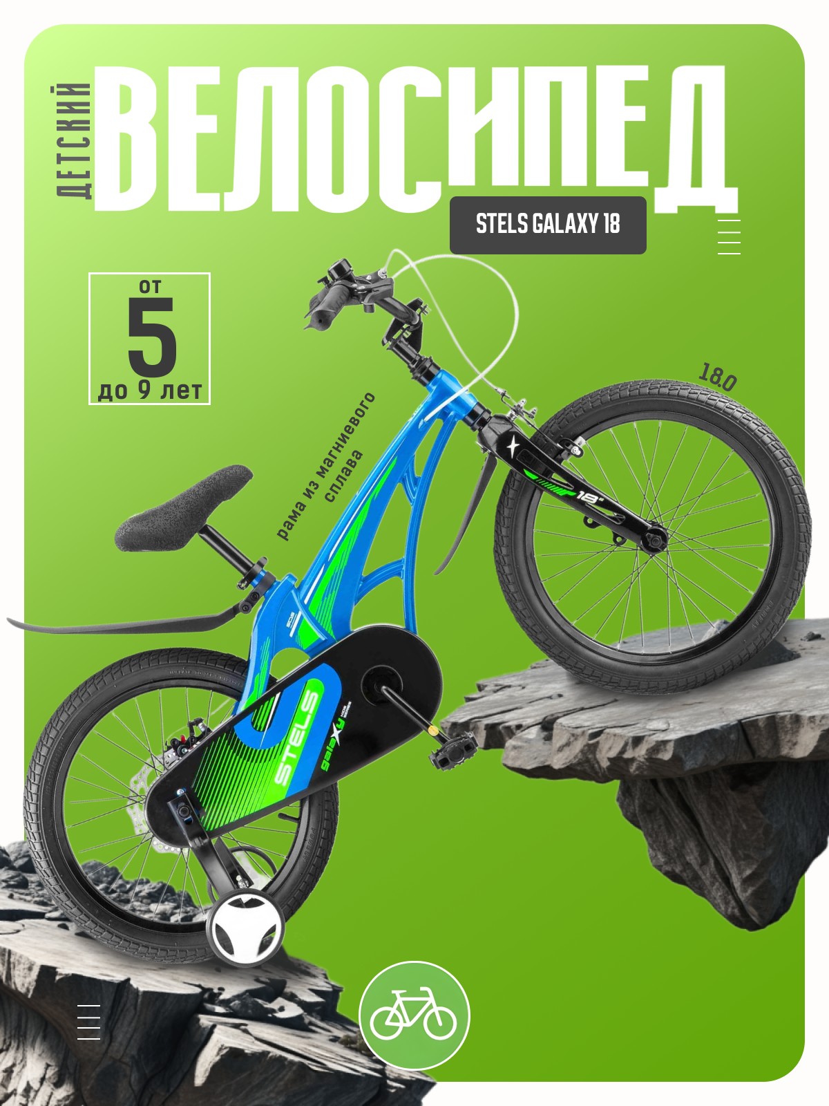Велосипед, предназначенный для детей в возрасте от четырех до восьми лет, без переключения передач. Технические особенности: легкая рама из магниевого сплава, жесткая вилка из магниевого сплава, одинарные стальные обода (под AV ниппель), передний тормоз - клещевой, задний тормоз - дисковый механический (ротор 140 мм), защита цепи, съемные боковые колеса, пластиковые крылья, звонок. Подходит для обучения и прогулочного катания в городских условиях. Диаметр колес - 18 дюймов. Вес - 10,4 кг.