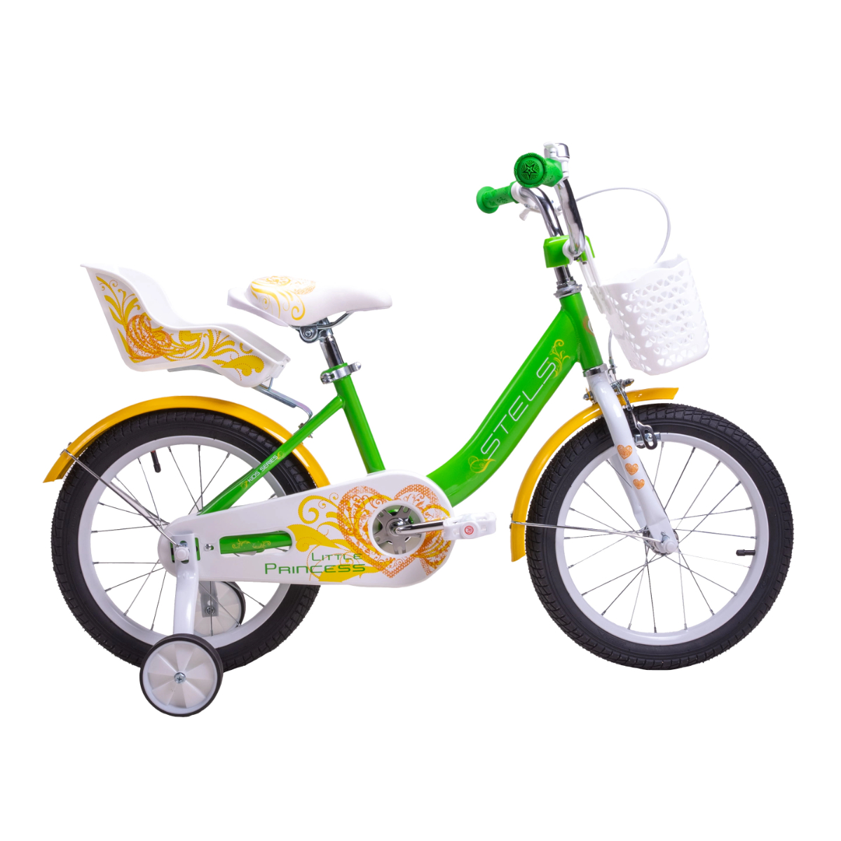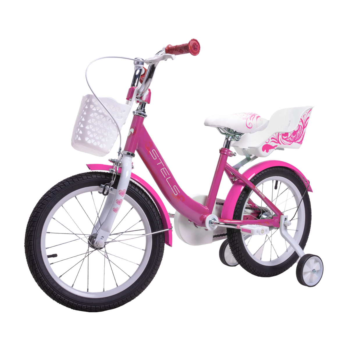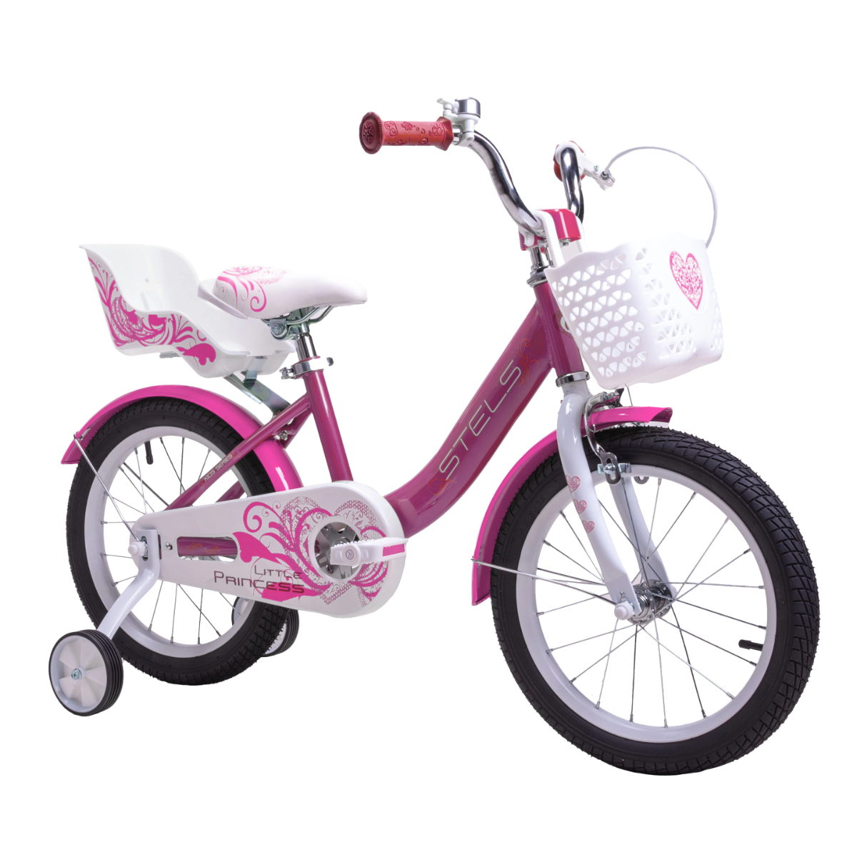 Велосипед, предназначенный для девочек в возрасте от трех до шести лет, без переключения передач. Технические особенности: прочная стальная рама, жесткая стальная вилка, одинарные стальные обода (под AV ниппель), передний тормоз - ручной клещевой, задний тормоз - ножной, полная защита цепи, длинные крылья, съемные боковые колеса, сиденье для куклы, передняя корзинка, звонок. Подходит для обучения и прогулочного катания в городских условиях. Диаметр колес - 16 дюймов. Вес - 10,1 кг.