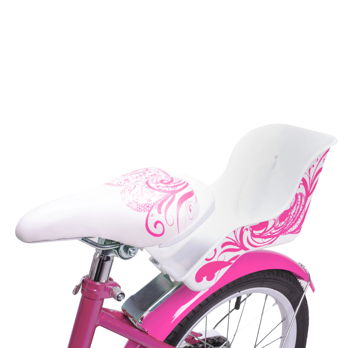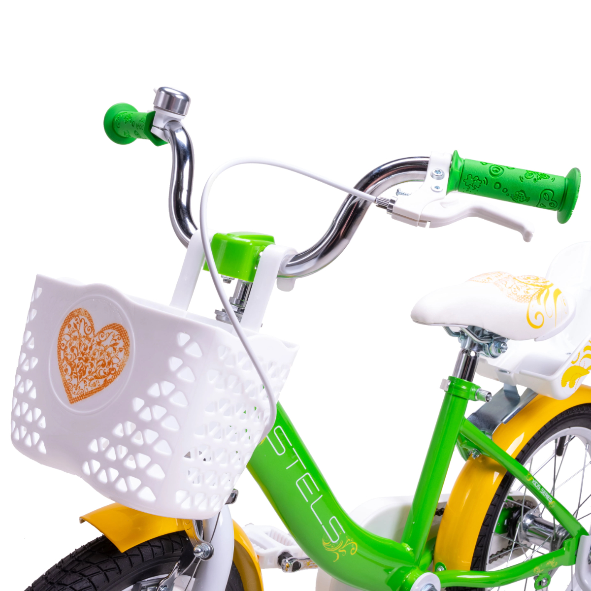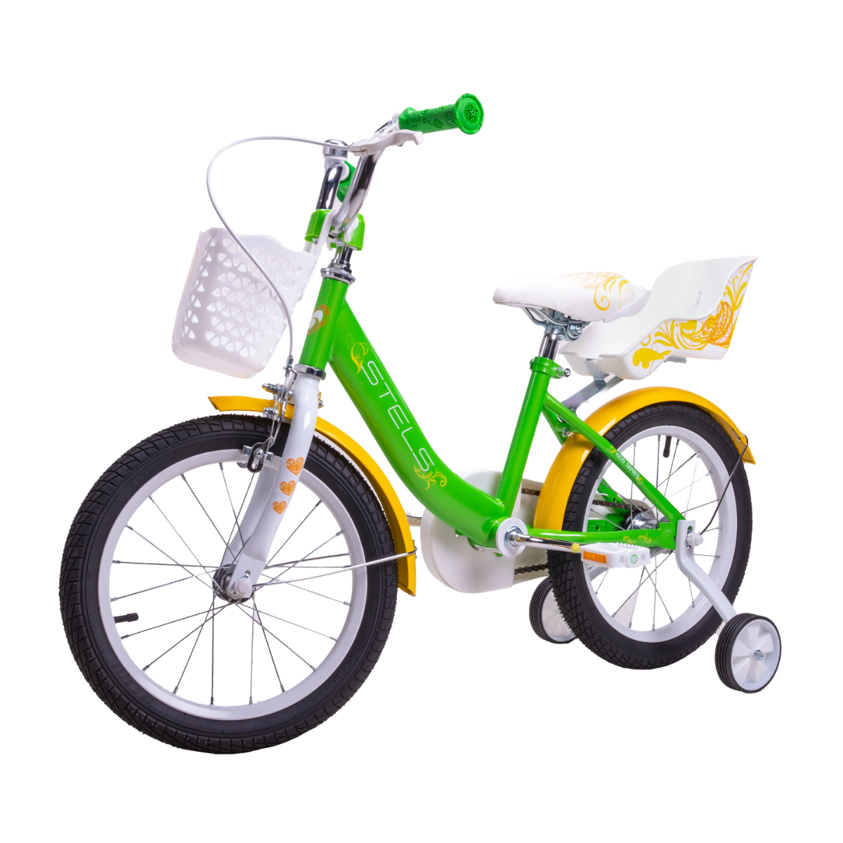 Велосипед, предназначенный для девочек в возрасте от трех до шести лет, без переключения передач. Технические особенности: прочная стальная рама, жесткая стальная вилка, одинарные стальные обода (под AV ниппель), передний тормоз - ручной клещевой, задний тормоз - ножной, полная защита цепи, длинные крылья, съемные боковые колеса, сиденье для куклы, передняя корзинка, звонок. Подходит для обучения и прогулочного катания в городских условиях. Диаметр колес - 16 дюймов. Вес - 10,1 кг.