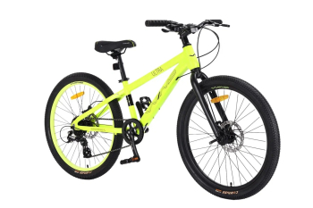 Подростковый велосипед с оборудованием начального класса Shimano, 7 скоростей. Технические особенности: легкая алюминиевая рама (частично скрытая проводка, прямой рулевой стакан, кареточный стакан BSA, съемный петух, крепление калипера IS), жесткая алюминиевая вилка (крепление калипера IS), двойные алюминиевые обода (под AV ниппель), дисковые механические тормоза (роторы 160/160 мм), защита передней звезды, катафоты. Подходит для прогулочного катания в городских условиях. Диаметр колес - 24 дюйма. Вес - 11,5 кг.