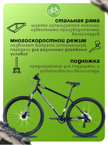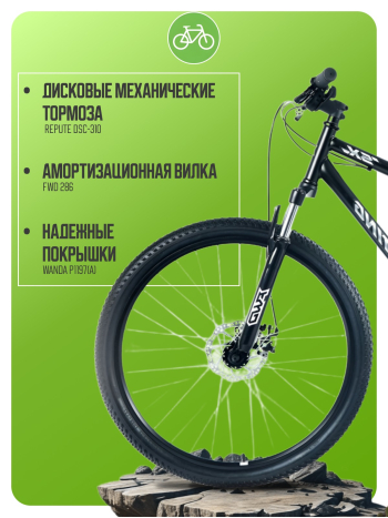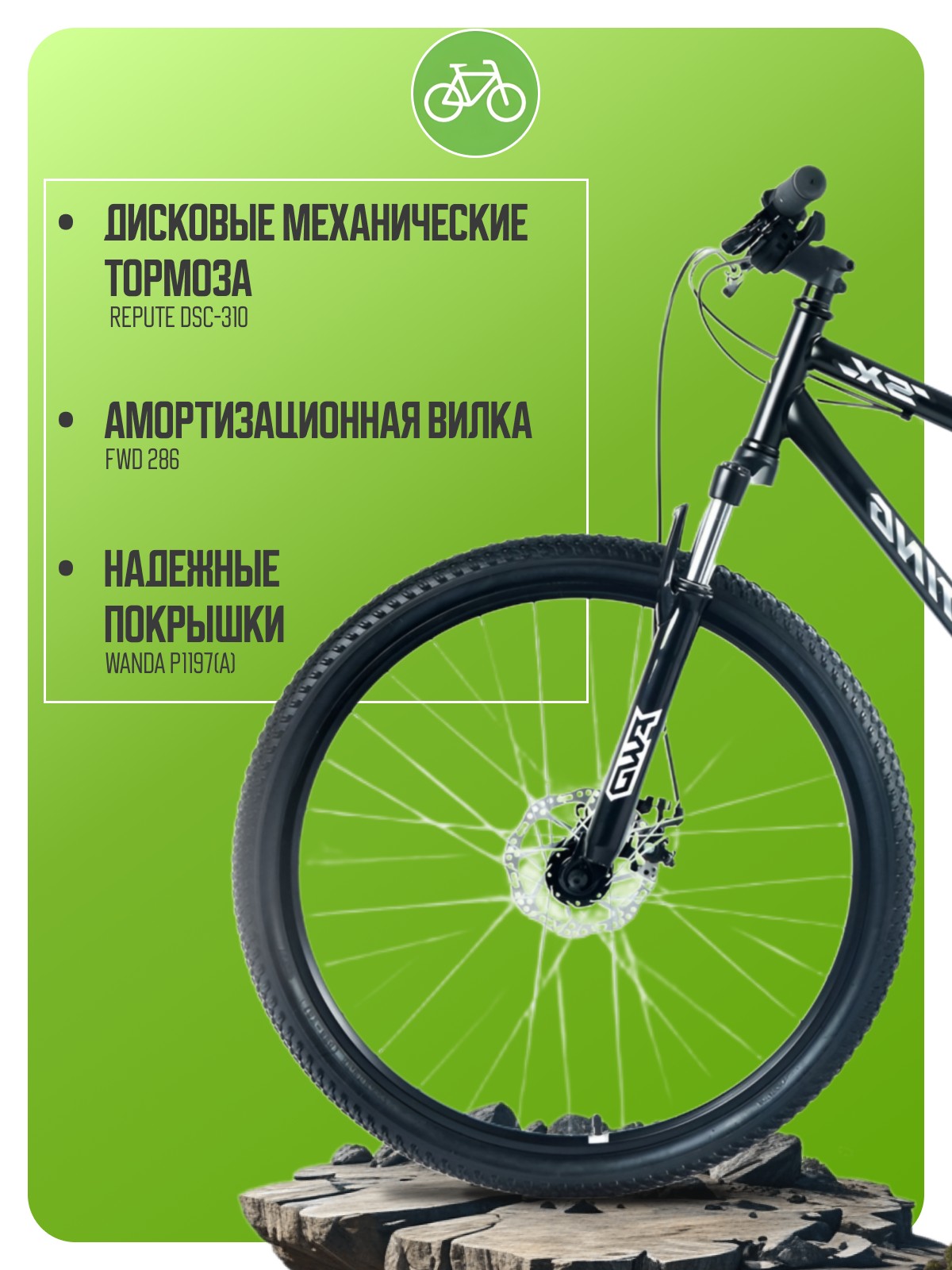 Горный велосипед для начинающих с навесным оборудованием Shimano/Microshift, 8 скоростей. Технические особенности: прочная стальная рама (открытая прокладка тросов, прямой рулевой стакан, кареточный стакан BSA, крепление калипера IS, интегрированный петух, бонки для багажника и флягодержателя), амортизационная вилка FWD 286 (пружинно-эластомерная, стальная с алюминиевой короной, ход 80 мм, крепление калипера IS), двойные алюминиевые обода FWD (под AV ниппель), дисковые механические тормоза Repute DSC-310 (роторы 160/160 мм с креплением на 6 болтов), подножка. Подходит для прогулочной езды по различным дорогам и пересеченной местности. Диаметр колес - 29 дюймов. Вес - 17,3 кг.