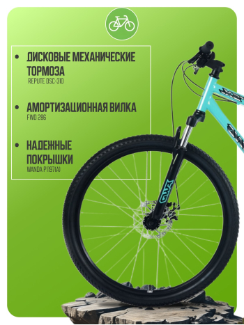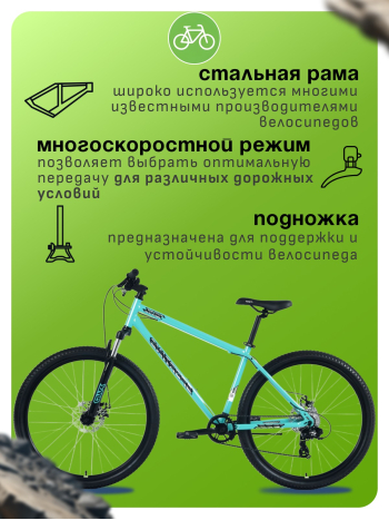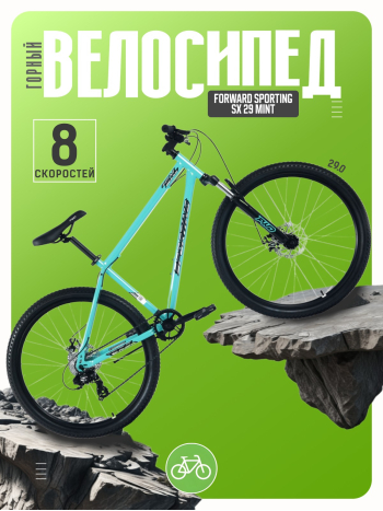 Горный велосипед для начинающих с навесным оборудованием Shimano/Microshift, 8 скоростей. Технические особенности: прочная стальная рама (открытая прокладка тросов, прямой рулевой стакан, кареточный стакан BSA, крепление калипера IS, интегрированный петух, бонки для багажника и флягодержателя), амортизационная вилка FWD 286 (пружинно-эластомерная, стальная с алюминиевой короной, ход 80 мм, крепление калипера IS), двойные алюминиевые обода FWD (под AV ниппель), дисковые механические тормоза Repute DSC-310 (роторы 160/160 мм с креплением на 6 болтов), подножка. Подходит для прогулочной езды по различным дорогам и пересеченной местности. Диаметр колес - 29 дюймов. Вес - 17,3 кг.