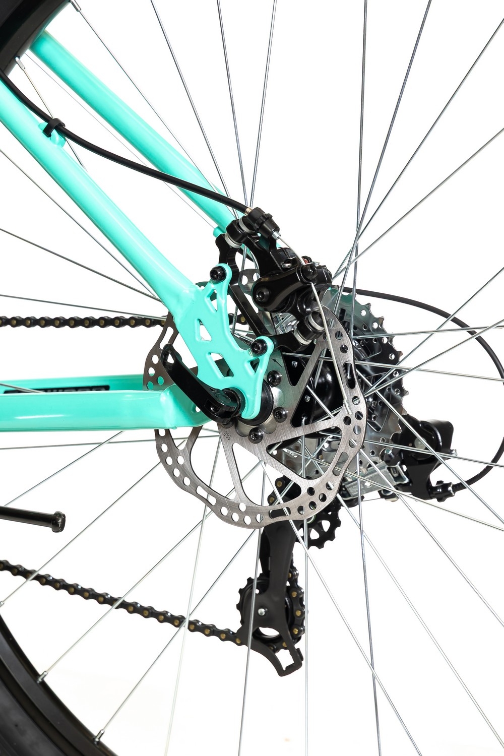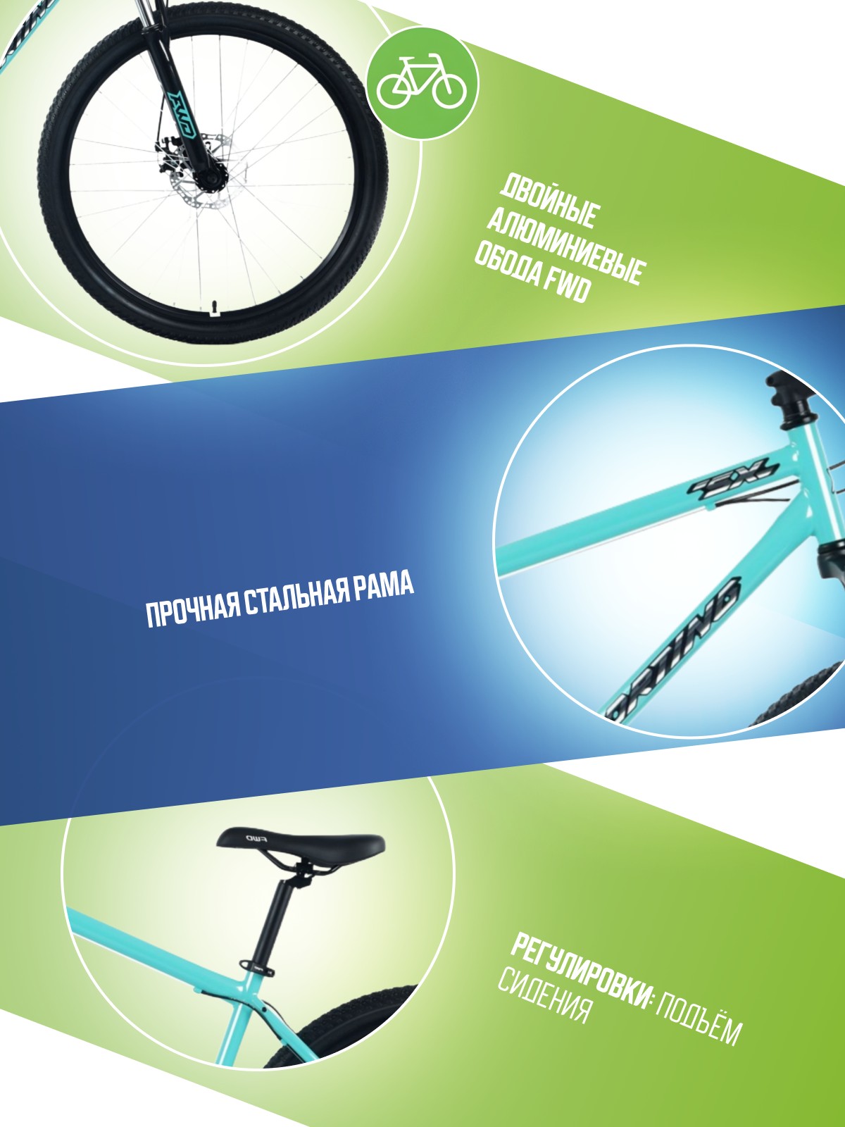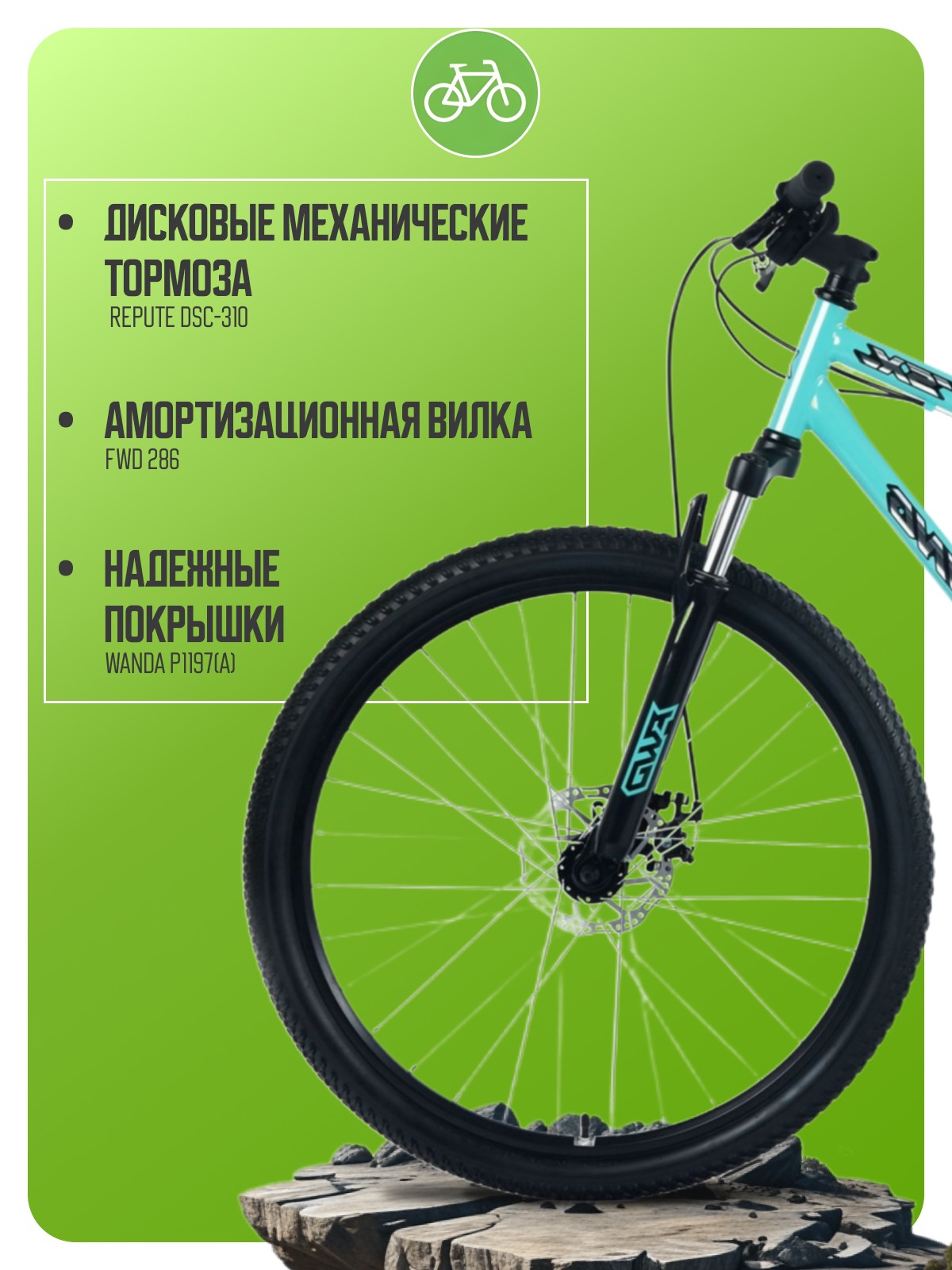 Горный велосипед для начинающих с навесным оборудованием Shimano/Microshift, 8 скоростей. Технические особенности: прочная стальная рама (открытая прокладка тросов, прямой рулевой стакан, кареточный стакан BSA, крепление калипера IS, интегрированный петух, бонки для багажника и флягодержателя), амортизационная вилка FWD 286 (пружинно-эластомерная, стальная с алюминиевой короной, ход 80 мм, крепление калипера IS), двойные алюминиевые обода FWD (под AV ниппель), дисковые механические тормоза Repute DSC-310 (роторы 160/160 мм с креплением на 6 болтов), подножка. Подходит для прогулочной езды по различным дорогам и пересеченной местности. Диаметр колес - 29 дюймов. Вес - 17,3 кг.