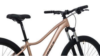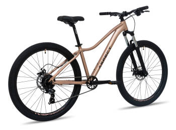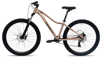 Женский горный велосипед с навесным оборудованием Shimano/LTWOO, 7 скоростей. Технические особенности: легкая алюминиевая рама (сплав 6061, женская геометрия, гидроформинг, скрытая прокладка тросов, кареточный стакан BSA, прямой рулевой стакан, съёмный петух, крепление калипера IS), амортизационная вилка GTMRK 328 MLO (пружинно-эластомерная, механическая блокировка, регулировка преднагрузки, ход 100 мм, диаметр ног 30 мм, крепление калипера PM), двойные алюминиевые обода Code D21 (под ниппель AV), дисковые механические тормоза Repute DSC310 (роторы 160/160 мм). Подходит для активной езды по различным дорогам и пересеченной местности. Диаметр колес - 26 дюймов. Вес - 14,3 кг.