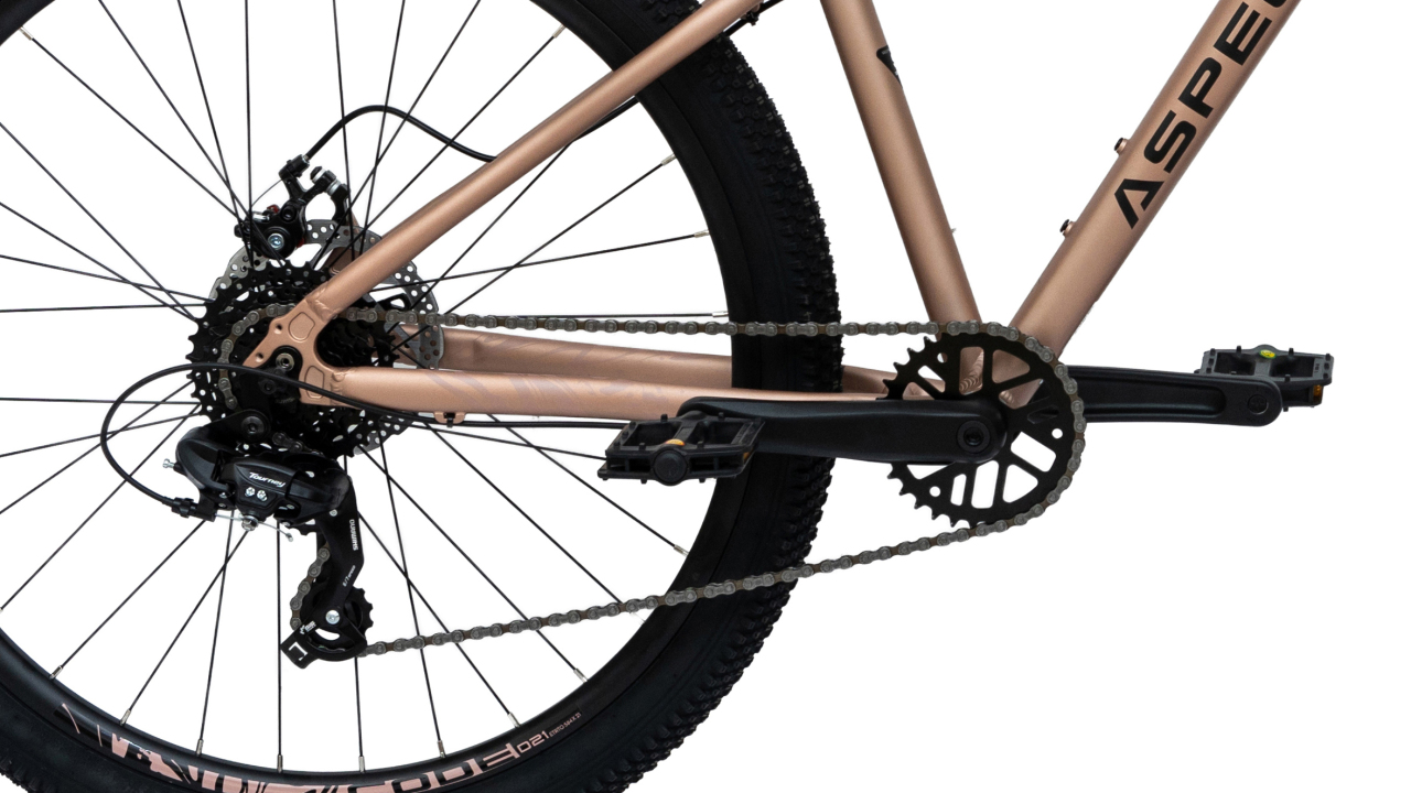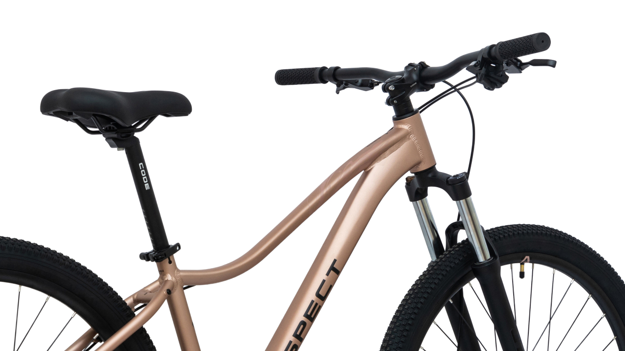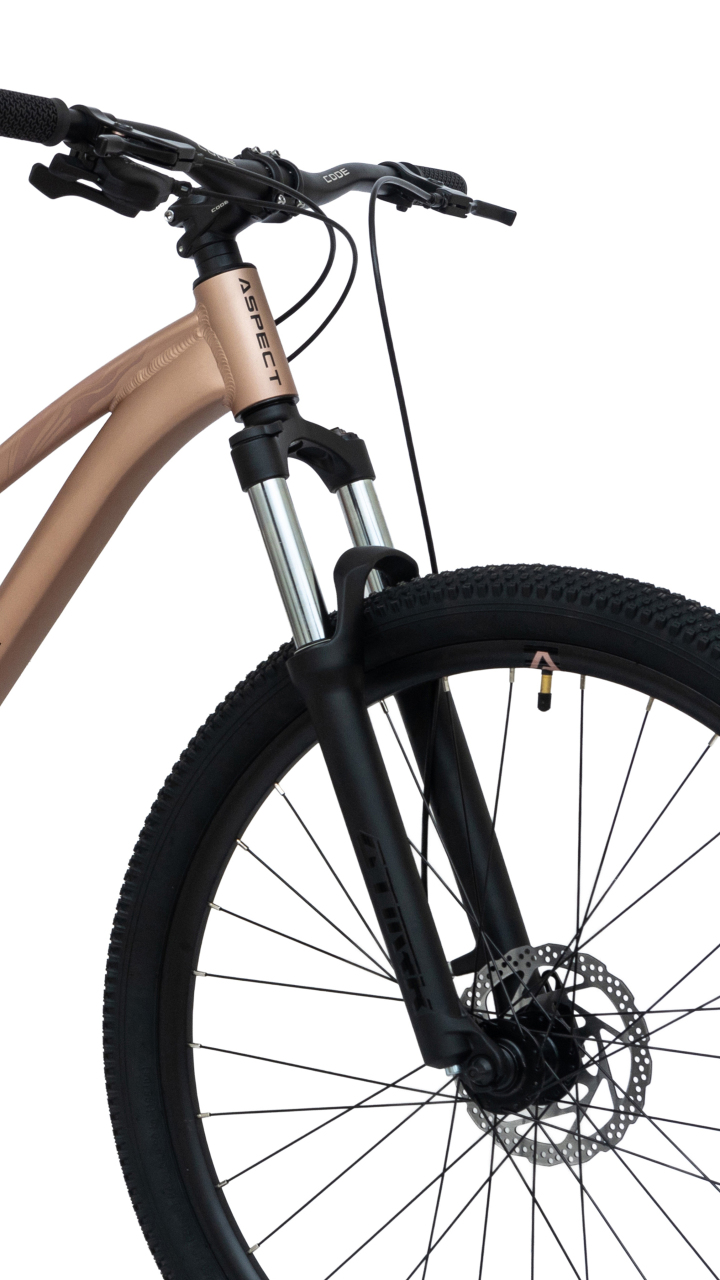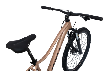 Женский горный велосипед с навесным оборудованием Shimano/LTWOO, 7 скоростей. Технические особенности: легкая алюминиевая рама (сплав 6061, женская геометрия, гидроформинг, скрытая прокладка тросов, кареточный стакан BSA, прямой рулевой стакан, съёмный петух, крепление калипера IS), амортизационная вилка GTMRK 328 MLO (пружинно-эластомерная, механическая блокировка, регулировка преднагрузки, ход 100 мм, диаметр ног 30 мм, крепление калипера PM), двойные алюминиевые обода Code D21 (под ниппель AV), дисковые механические тормоза Repute DSC310 (роторы 160/160 мм). Подходит для активной езды по различным дорогам и пересеченной местности. Диаметр колес - 27,5 дюймов. Вес - 14,4 кг.