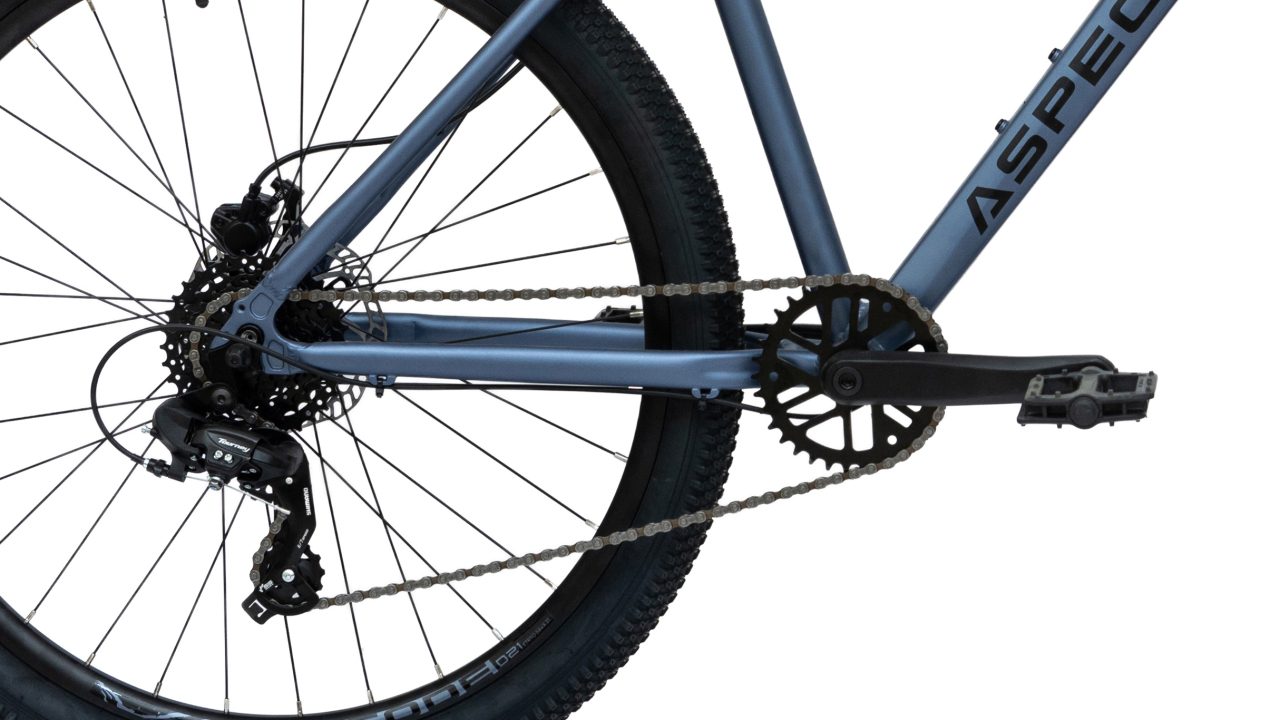 Передает вращение от шатунов на кассету. Теоретически цепь представляет собой подшипники скольжения (втулки), соединенные между собой боковыми пластинами. Цепи разнятся по длине, то есть количеству звеньев, и по ширине. Чем больше скоростей на велосипеде, тем цепь уже. Данный элемент является открытым, поэтому нуждается в частой смазке и чистке. Во многом плавное переключение передач, а соответственно и ход велосипеда зависят от смазки цепи и степени ее загрязнения.