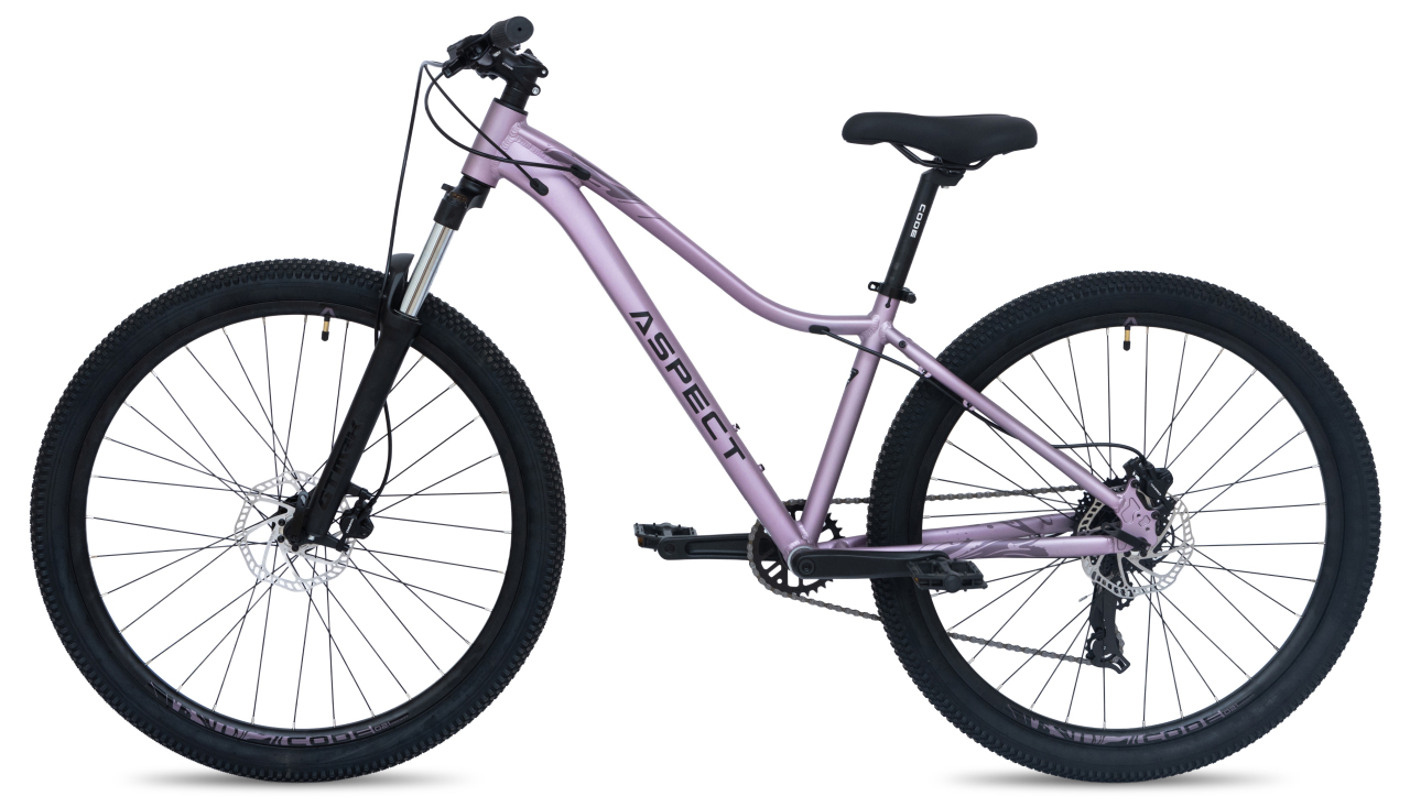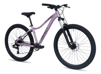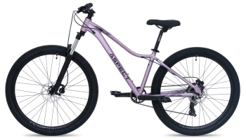 Женский горный велосипед с навесным оборудованием Shimano/LTWOO, 7 скоростей. Технические особенности: легкая алюминиевая рама (сплав 6061, женская геометрия, гидроформинг, скрытая прокладка тросов, кареточный стакан BSA, прямой рулевой стакан, съёмный петух, крепление калипера IS), амортизационная вилка GTMRK 328 MLO (пружинно-эластомерная, механическая блокировка, регулировка преднагрузки, ход 100 мм, диаметр ног 30 мм, крепление калипера PM), двойные алюминиевые обода Code D21 (под ниппель AV), дисковые гидравлические тормоза Tektro TKD-176 (роторы 160/160 мм). Подходит для активной езды по различным дорогам и пересеченной местности. Диаметр колес - 27,5 дюймов. Вес - 14,4 кг.