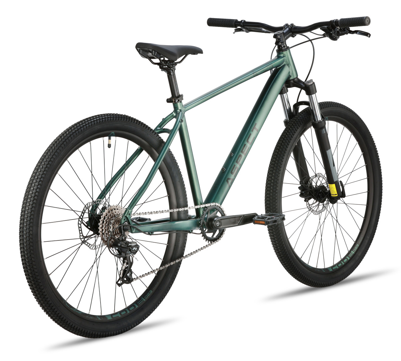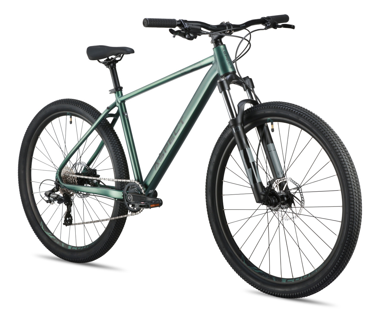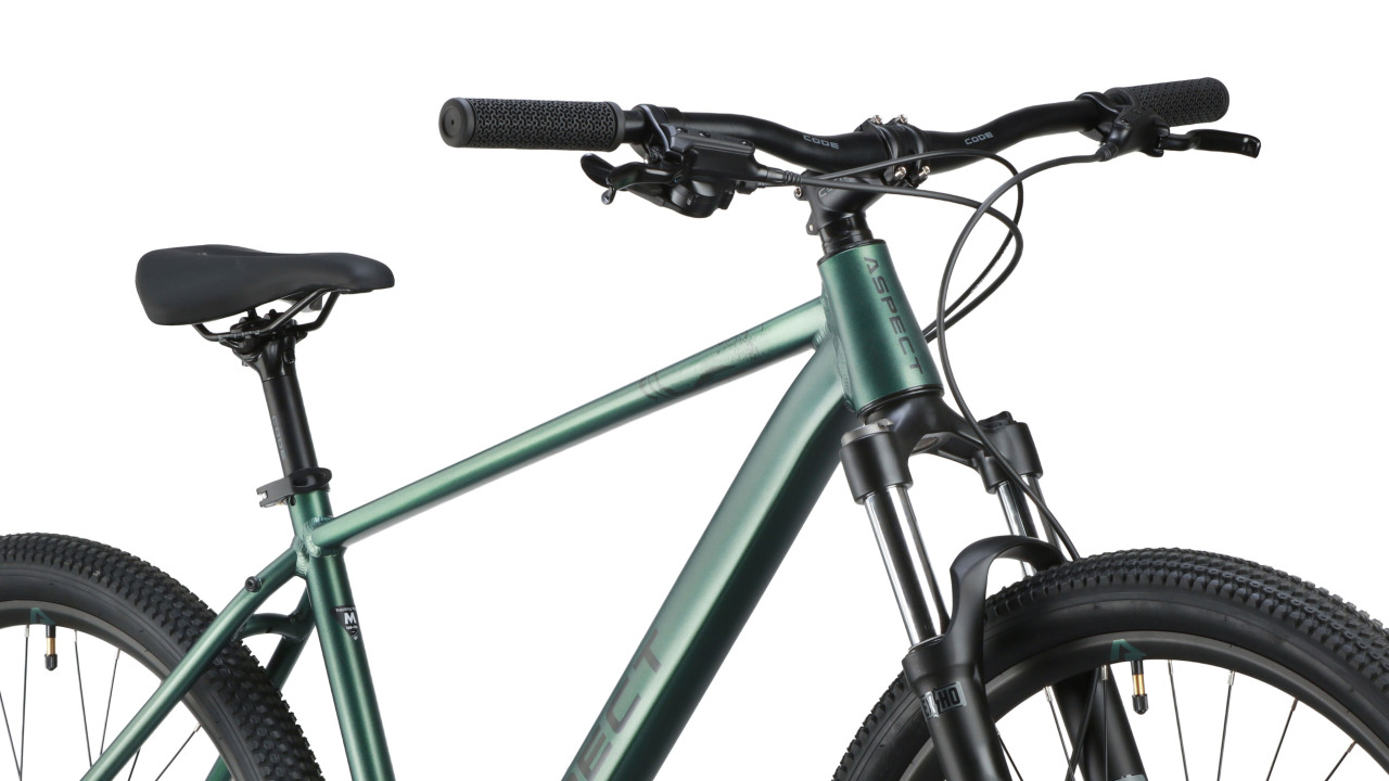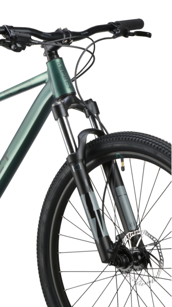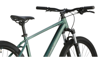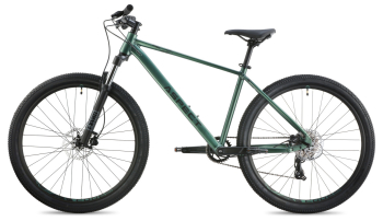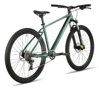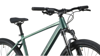Хардтейл для езды в стиле кросс-кантри с оборудованием начального любительского класса Shimano, 8 скоростей. Технические особенности: легкая алюминиевая рама (сплав 6061, гидроформинг, двойной баттинг, частично скрытая проводка, конический рулевой стакан ZS 44/56, кареточный стакан BSA, съемный петух, крепление калипера PM), амортизационная вилка Exsho Jungle ML-P (пружинно-эластомерная, механическая блокировка, ход 100 мм, диаметр ног 30 мм, крепление калипера PM), двойные алюминиевые обода Code D23 (под ниппель AV), дисковые гидравлические тормоза Tektro TKD-176 (роторы 160/160 мм). Подходит для активной езды по различным дорогам и пересеченной местности. Диаметр колес - 27,5 дюймов. Вес - 14,6 кг.