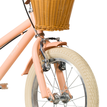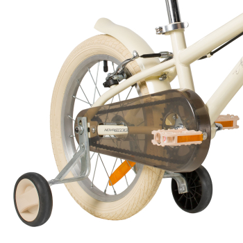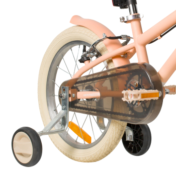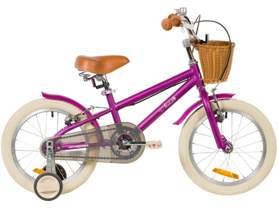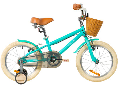Велосипед, предназначенный для детей в возрасте от двух до четырех лет, без переключения передач. Технические особенности: прочная стальная рама, жесткая стальная вилка, одинарные алюминиевые обода (ниппель AV), ободные механические тормоза V-brake, полная защита цепи, съемные боковые колеса, крылья, передняя корзинка, звонок, катафоты. Подходит для обучения и прогулочного катания в городских условиях. Диаметр колес - 14 дюймов. Вес - 10 кг.