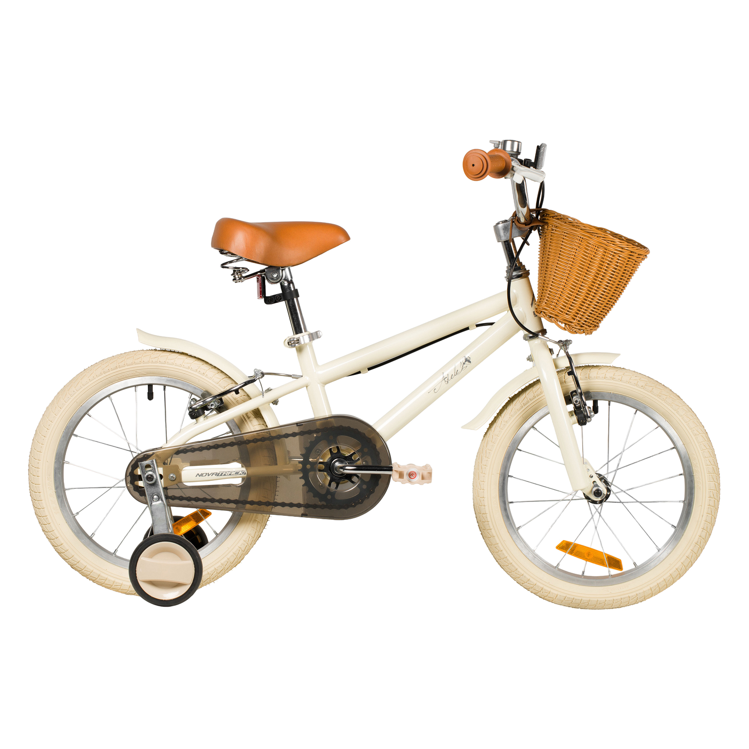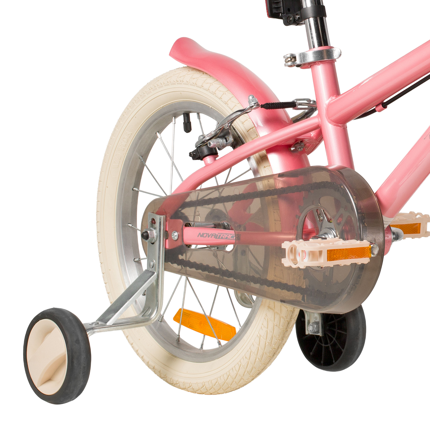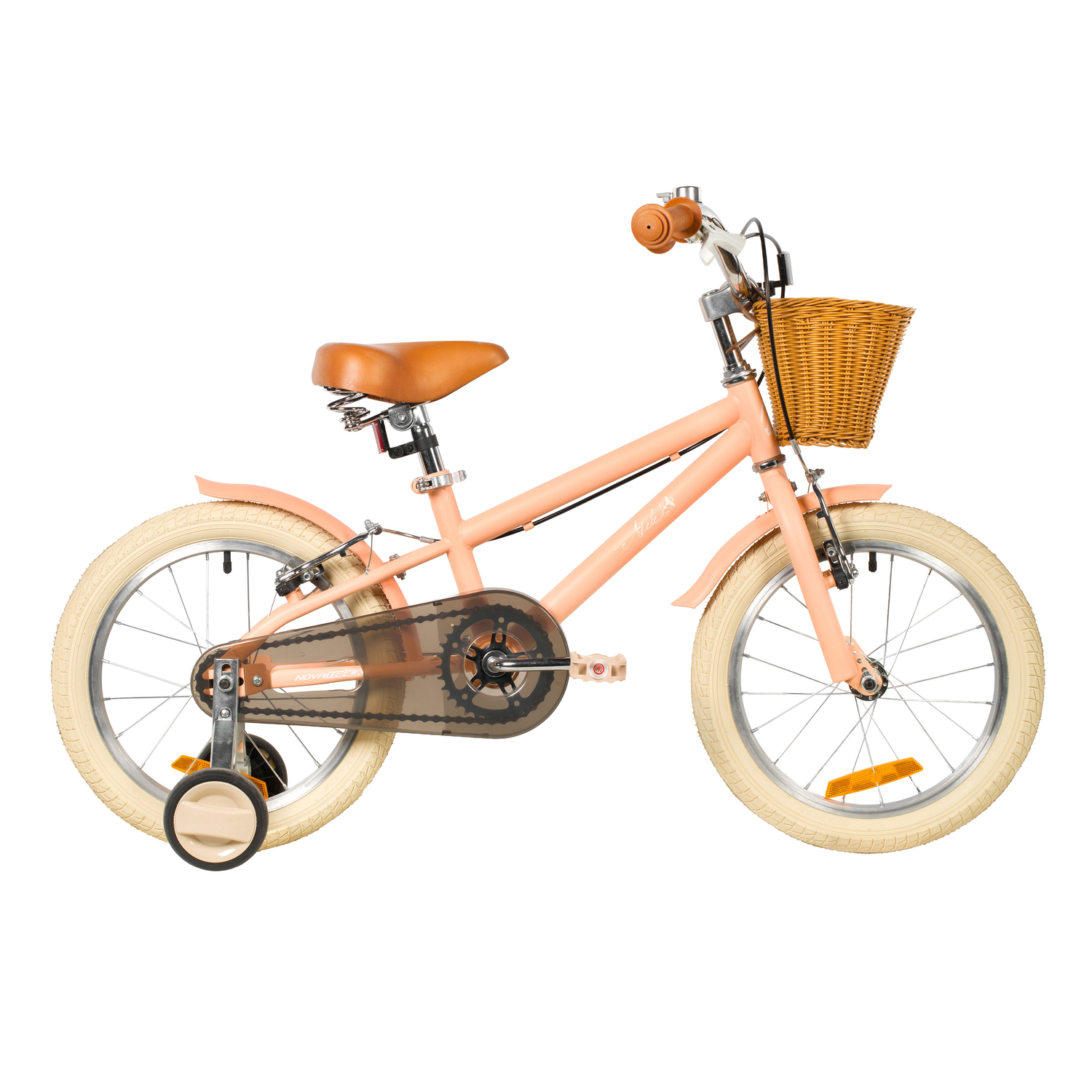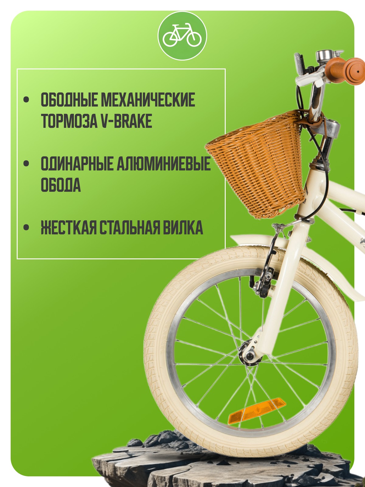 Велосипед, предназначенный для детей в возрасте от двух до четырех лет, без переключения передач. Технические особенности: прочная стальная рама, жесткая стальная вилка, одинарные алюминиевые обода (ниппель AV), ободные механические тормоза V-brake, полная защита цепи, съемные боковые колеса, крылья, передняя корзинка, звонок, катафоты. Подходит для обучения и прогулочного катания в городских условиях. Диаметр колес - 14 дюймов. Вес - 10 кг.