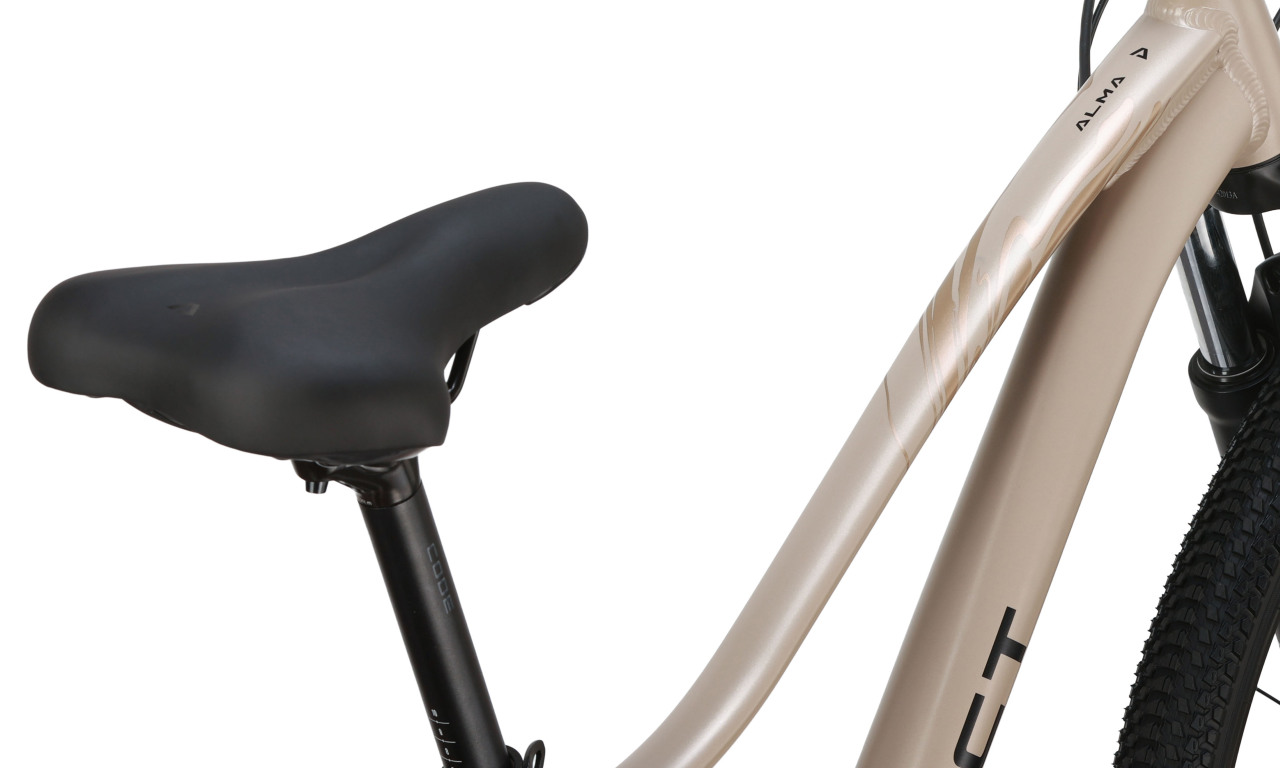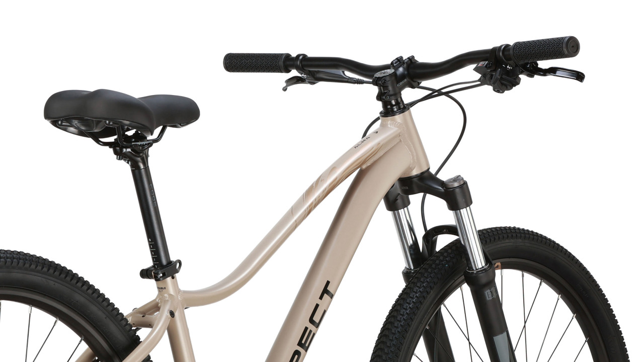 Женский горный велосипед с оборудованием начального любительского класса Shimano, 8 скоростей. Технические особенности: алюминиевая рама (сплав 6061, гидроформинг, скрытая прокладка тросов, рулевой стакан ZS, каретка BSA, крепление флягодержателя, бонки для багажника), амортизационная вилка EXSHO JUNGLE ML-P (пружинно-эластомерная, ход 100 мм, диаметр ног 28 мм), двойные алюминиевые обода Code D23 (под дисковый тормоз, ширина 23 мм, ниппель AV, 32Н), дисковые механические тормоза RPT DSC310 (роторы 160/160 мм). Подходит для активной езды по различным дорогам и пересеченной местности. Диаметр колес - 27.5 дюймов. Вес - 14,1 кг.