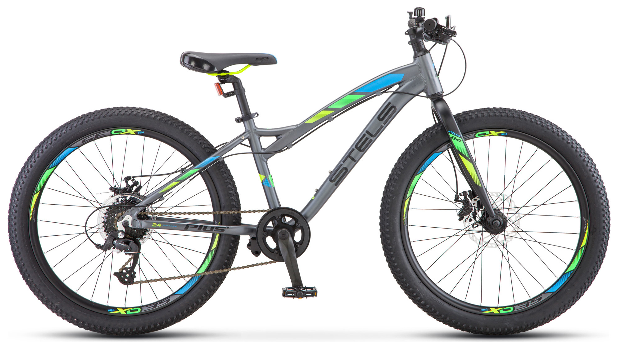 Подростковый велосипед с оборудованием начального любительского класса Shimano, 8 скоростей. Технические особенности: легкая алюминиевая рама (частично скрытая прокладка тросов, гидроформинг, съемный петух, кареточный стакан BSA, рулевой стакан ZS, крепление калипера IS), жесткая стальная вилка, двойные алюминиевые обода (под AV ниппель), дисковые механические тормоза (роторы 160/160 мм с креплением на 6 болтов), защита цепи, подножка, катафоты, звонок. Подходит для прогулочного катания в городских условиях и по несложным маршрутам в лесу. Диаметр колес - 24 дюйма. Вес - 12,98 кг.