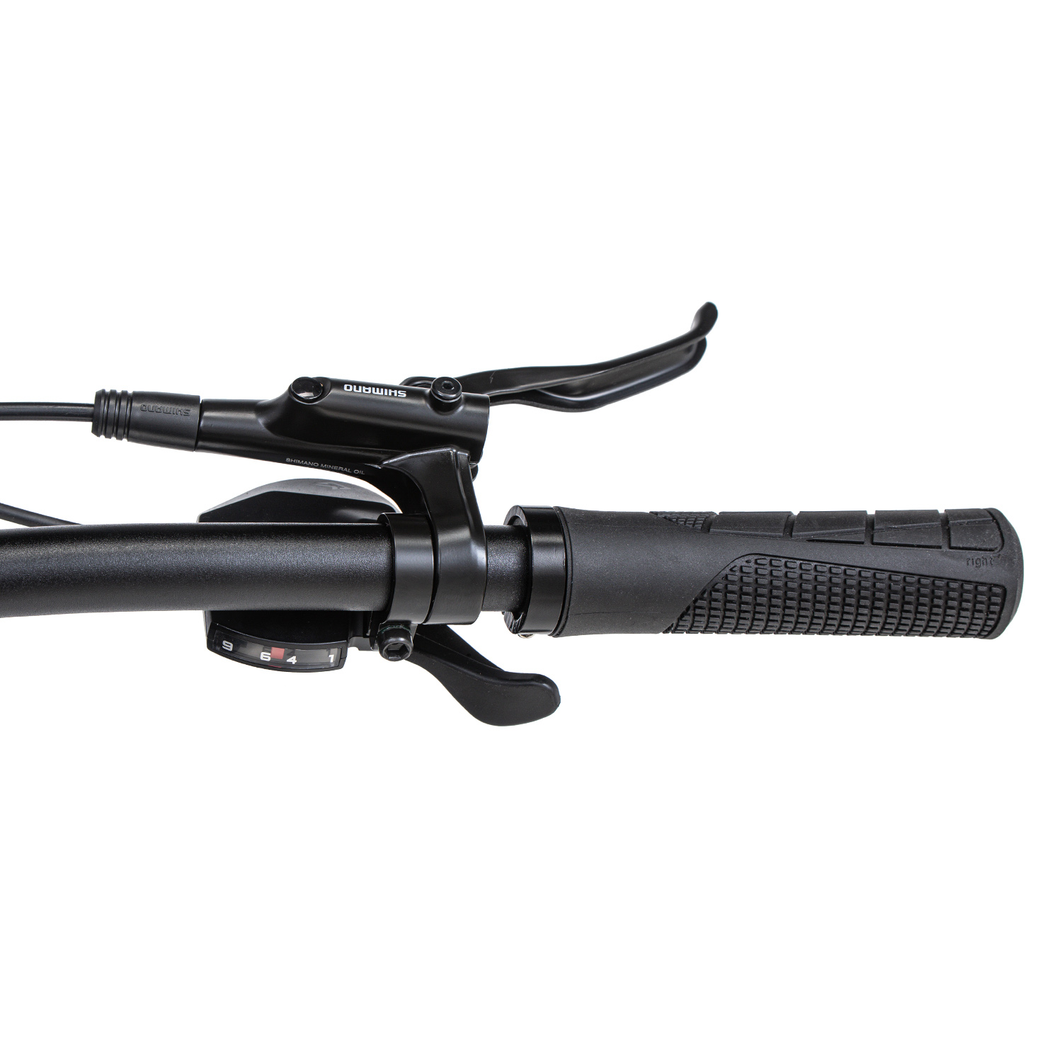 Горный велосипед с оборудованием высшего любительского класса Shimano, 9 скоростей. Технические особенности: легкая алюминиевая рама (сплав 6061, скрытая проводка, компенсация швов, конический рулевой стакан, дропауты UDH), амортизационная вилка 2ROXX MD-999 Air (воздушно-масляная, ход 120 мм, гидравлическая блокировка, регулировка отскока, диаметр ног 32 мм), двойные алюминиевые обода R30-2C (под ниппель Presta, подходят для бескамерного использования), дисковые гидравлические тормоза Shimano MT-200 (роторы 180/160 мм). Подходит для активного катания по пересеченной местности и в стиле трейл. Диаметр колес - 27,5 дюймов. Вес - 14,4 кг.