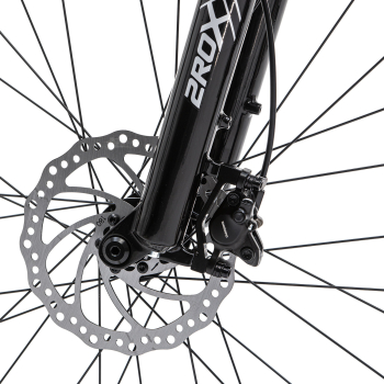 Горный велосипед с оборудованием любительского класса Shimano, 8 скоростей. Технические особенности: легкая алюминиевая рама (сплав 6061, скрытая проводка, компенсация швов, конический рулевой стакан, дропауты UDH), амортизационная вилка 2ROXX MD-999 (пружинно-эластомерная, ход 120 мм, гидравлическая блокировка хода, регулировка преднагрузки, диаметр ног 32 мм), двойные алюминиевые обода R30-2C (под ниппель Presta, подходят для бескамерного использования), дисковые гидравлические тормоза Shimano MT-200 (роторы 180/160 мм). Подходит для активного катания по пересеченной местности и в стиле трейл. Диаметр колес - 27,5 дюймов. Вес - 14,6 кг.