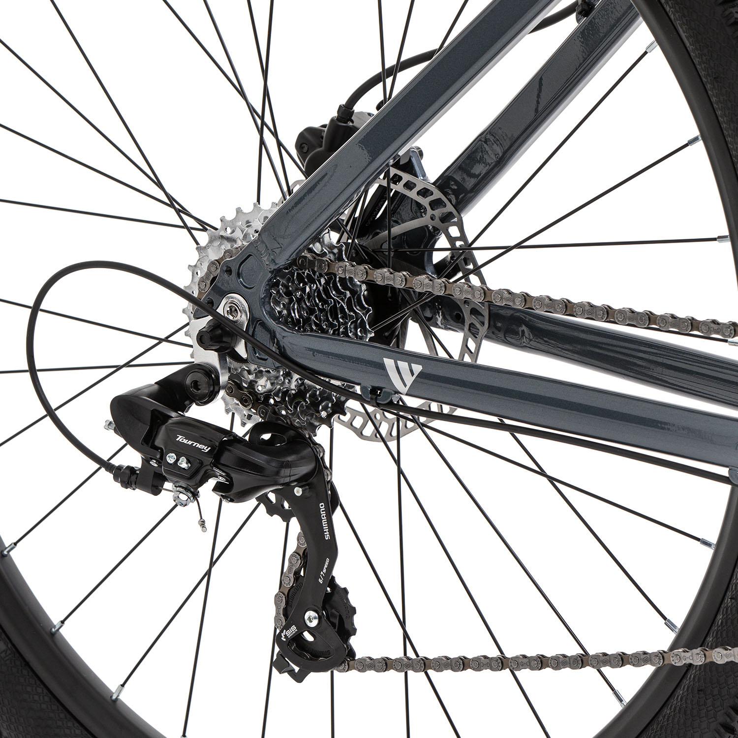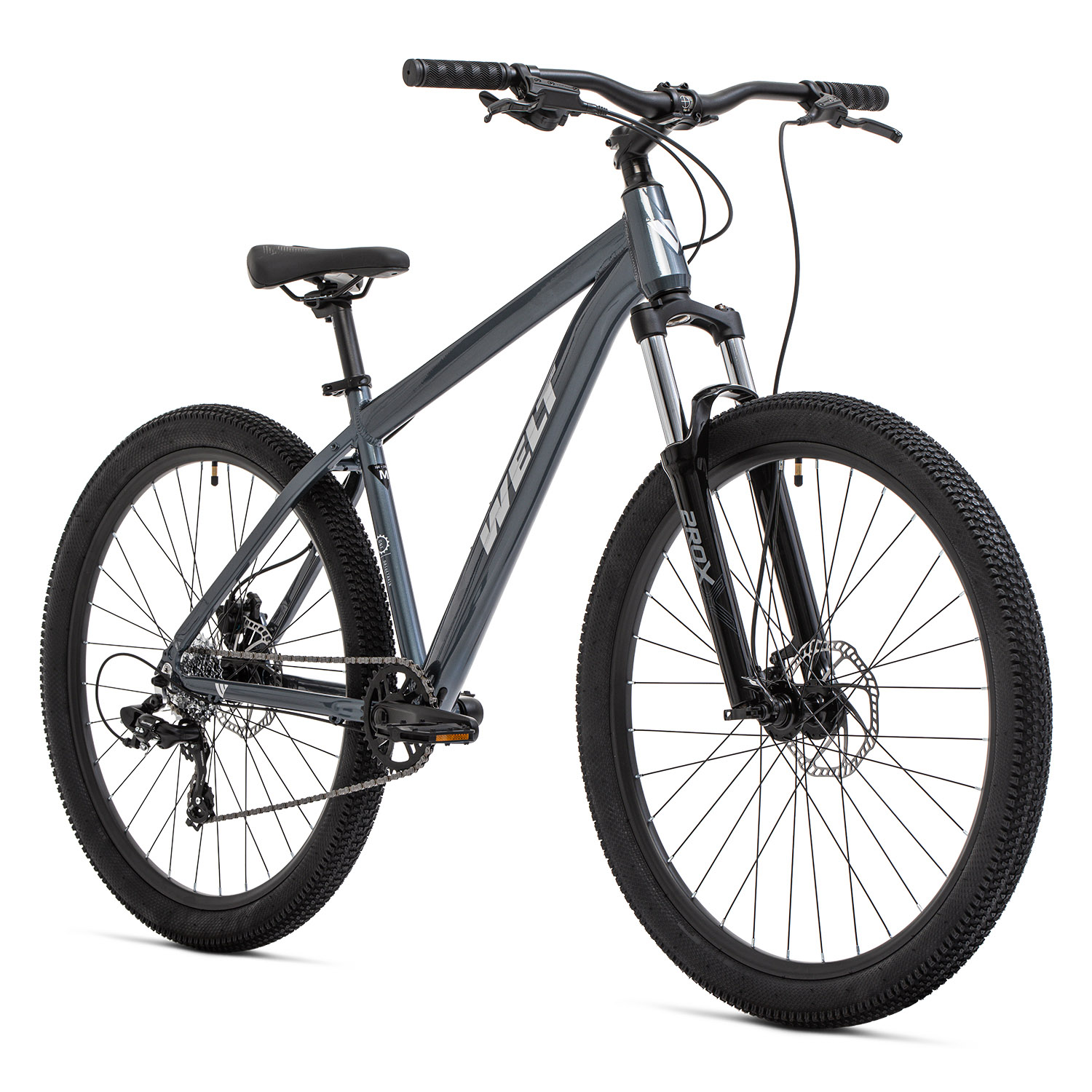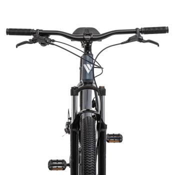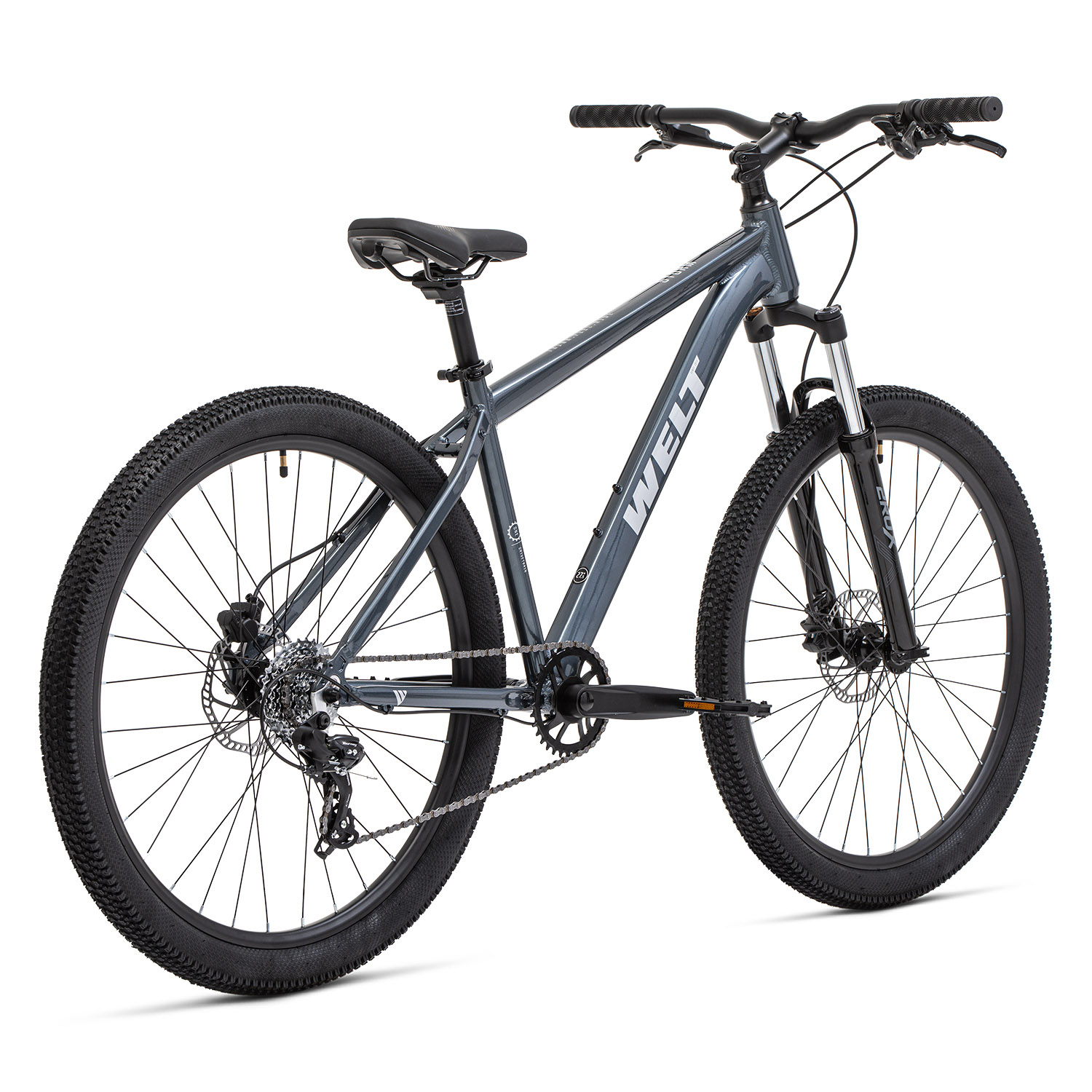 Горный велосипед с оборудованием начального класса Shimano, 7 скоростей. Технические особенности: легкая алюминиевая рама (сплав 6061, внутренняя прокладка тросов, съёмный петух, прямой рулевой стакан, крепление калипера IS, каретка BSA), амортизационная вилка 2ROXX 981 (пружинно-эластомерная, ход 100 мм, алюминиевые штаны, блокировка хода), двойные алюминиевые обода (под AV ниппель), дисковые гидравлические тормоза Tektro TKD176 (роторы 160/160 мм). Подходит для активной езды по различным дорогам и пересеченной местности. Диаметр колес - 27,5 дюймов. Вес - 14,6 кг.