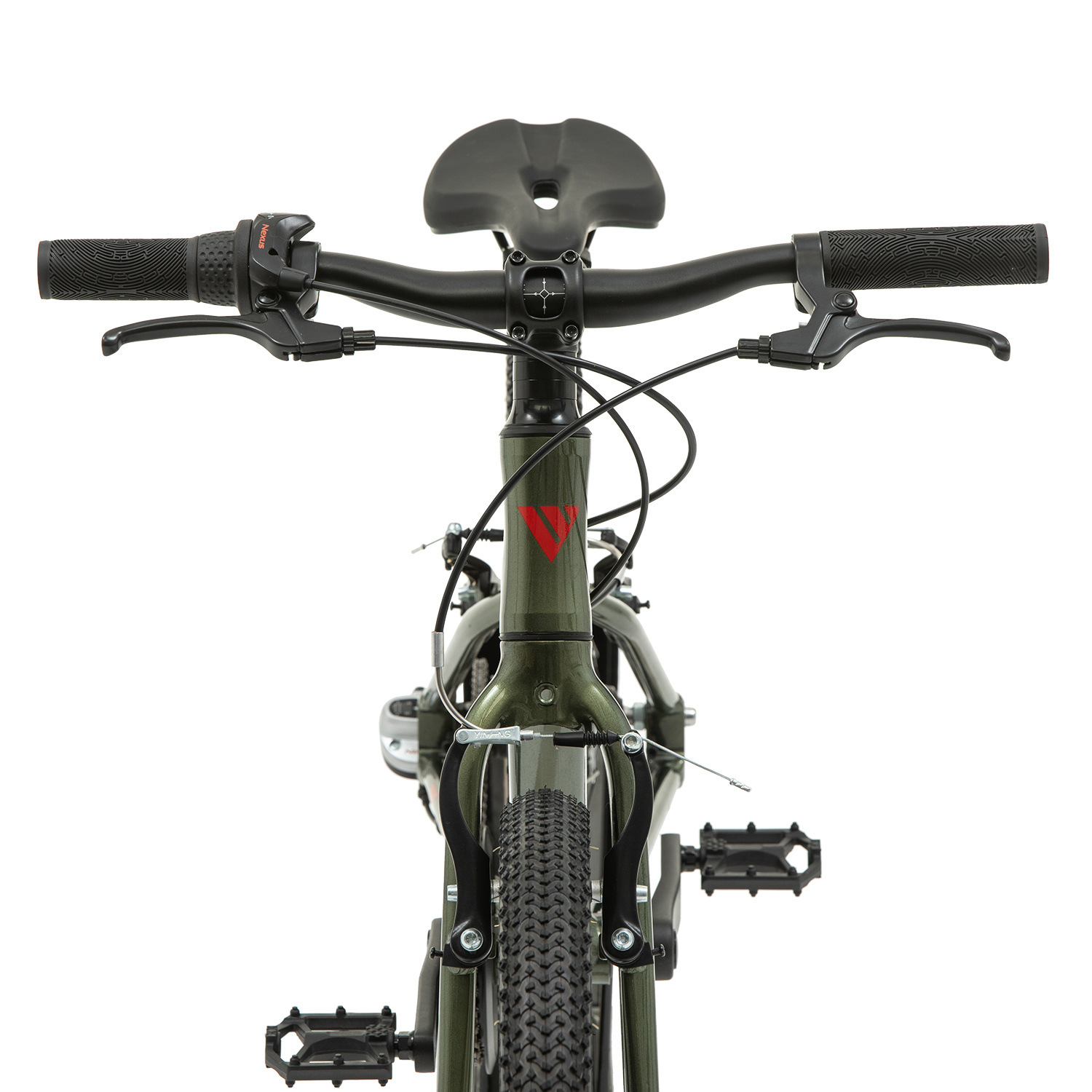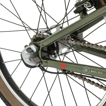 Велосипед, предназначенный для детей в возрасте от пяти до девяти лет, с оборудованием планетарного типа Shimano, 3 скорости. Технические особенности: легкая алюминиевая рама (сплав 6061, частично скрытая проводка, компенсация швов, прямой рулевой стакан, кареточный стакан BSA), жесткая алюминиевая вилка (сплав 6061, компенсация швов), двойные алюминиевые обода (под ниппель AV), надежные ободные тормоза 510DG Alloy V-brake, защита цепи. Подходит для прогулочного катания в городских условиях и по несложным маршрутам в лесу. Диаметр колес - 20 дюймов. Вес - 10 кг.