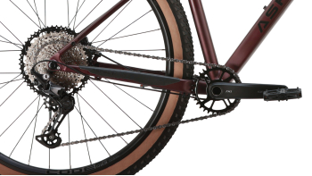 Хардтейл для езды в стиле кросс-кантри с оборудованием предпрофессионального класса Shimano, 12 скоростей. Технические особенности: легкая алюминиевая рама (сплав 6061, гидроформинг, двойной баттинг, скрытая прокладка тросов, сглаженные швы, кареточный стакан BSA, прямой рулевой стакан, крепление калипера PM, дропауты под сквозную ось Boost 148х12 мм), амортизационная вилка Exsho Fix 15 Air (воздушно-масляная, гидравлическая блокировка, регулировка отскока, ход 100 мм, дропауты под ось Boost 15х110 мм, анодированные алюминиевые ноги 34 мм, бушинги металл-тефлон), двойные алюминиевые обода Code D23 Race (под ниппель Presta FV, подходят для бескамерного использования), дисковые гидравлические тормоза Shimano MT-200 (роторы 180/160 мм). Подходит для спортивного катания в стиле кросс-кантри и участия в гонках. Диаметр колес - 29 дюймов. Вес - 13,5 кг.